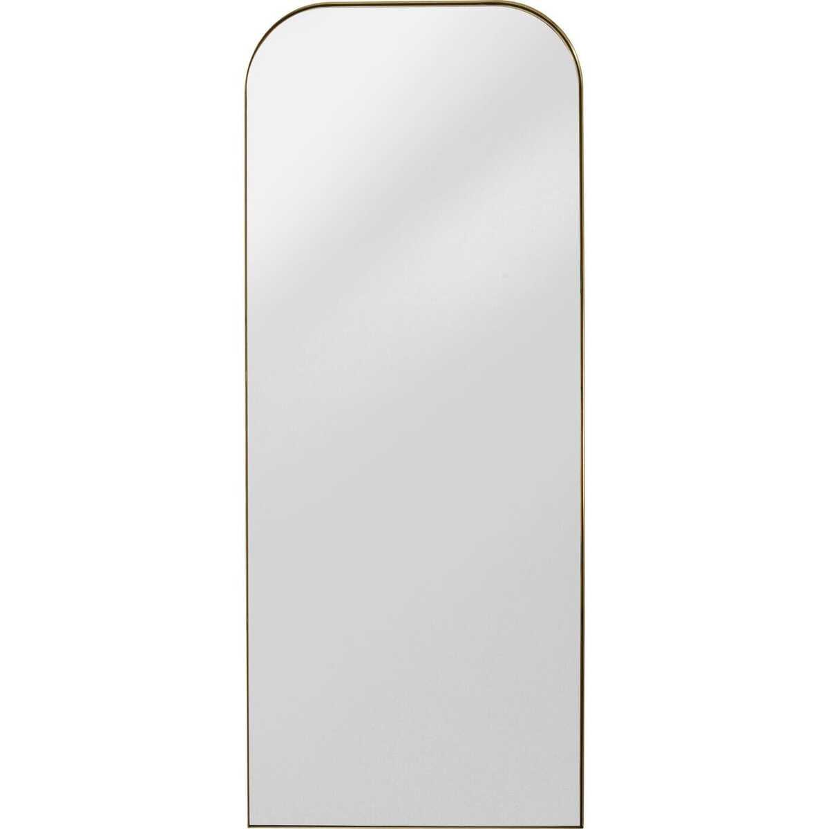 Dieser handgearbeitete Wandspiegel aus Stahl, der mit Messing veredelt wurde, verleiht jedem Raum das gewisse Etwas. Jedes Stück ist ein Unikat, wodurch der hohe Spiegel zu einem besonderen Eyecatcher wird. Spiegel erhöhen das natürliche Licht im Raum und eignen sich super, um ihn grösser und heller wirken zu lassen. Durch das klassische und schlichte Design passt diese Wanddekoration zu jedem Einrichtungsstil. Der abgerundete obere Rand und der eckige untere Rand schaffen ein harmonisches Zusammenspiel. Die einfache, vertikale Wandmontage ermöglicht eine schnelle und unkomplizierte Installation. Veredeln Sie Ihr Zuhause mit diesem zeitlosen Schmuckstück!Goldener Wandspiegel aus Metall, 190 x 80 x 3 Zentimeter (H/B/T)Handgearbeitetes Unikat mit einem Rahmen mit Messing-FinishKlassisches und schlichtes Design für Flur, Wohnzimmer oder SchlafzimmerAuf dewr Rückseite mit Haken für die vertikale Montage an der WandProduktinformation Rahmen: Stahl messing beschichtet, Rückwand: Glas verspiegelt, für Wandmontage vertikal, handgearbeitet, jedes Stück ein Unikat, 189 - 79 cm Spiegelfläche