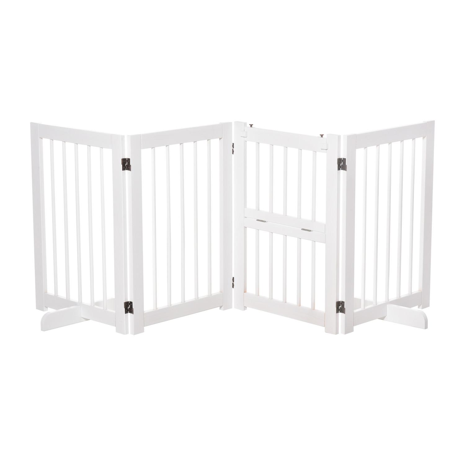 Northio Hunde Absperrgitter Türschutzgitter 2 Stützfüße Klappbar Schutzgitter 4 Stück Kiefer Weiß 215X38X75Cm