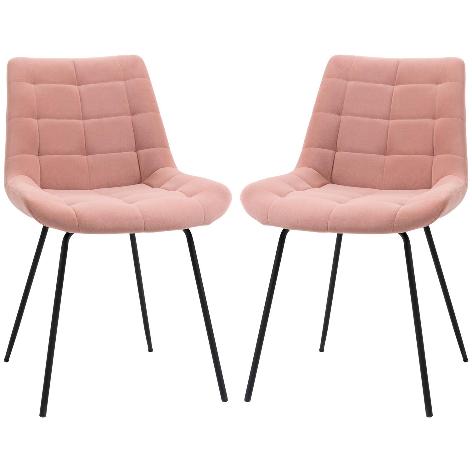 Northio Esszimmerstuhl 2Er Set Küchenstuhl Mit Rückenlehne, Samtbezug In Rosa, Retrodesign, Stahlbeine, Für Wohnzimmer