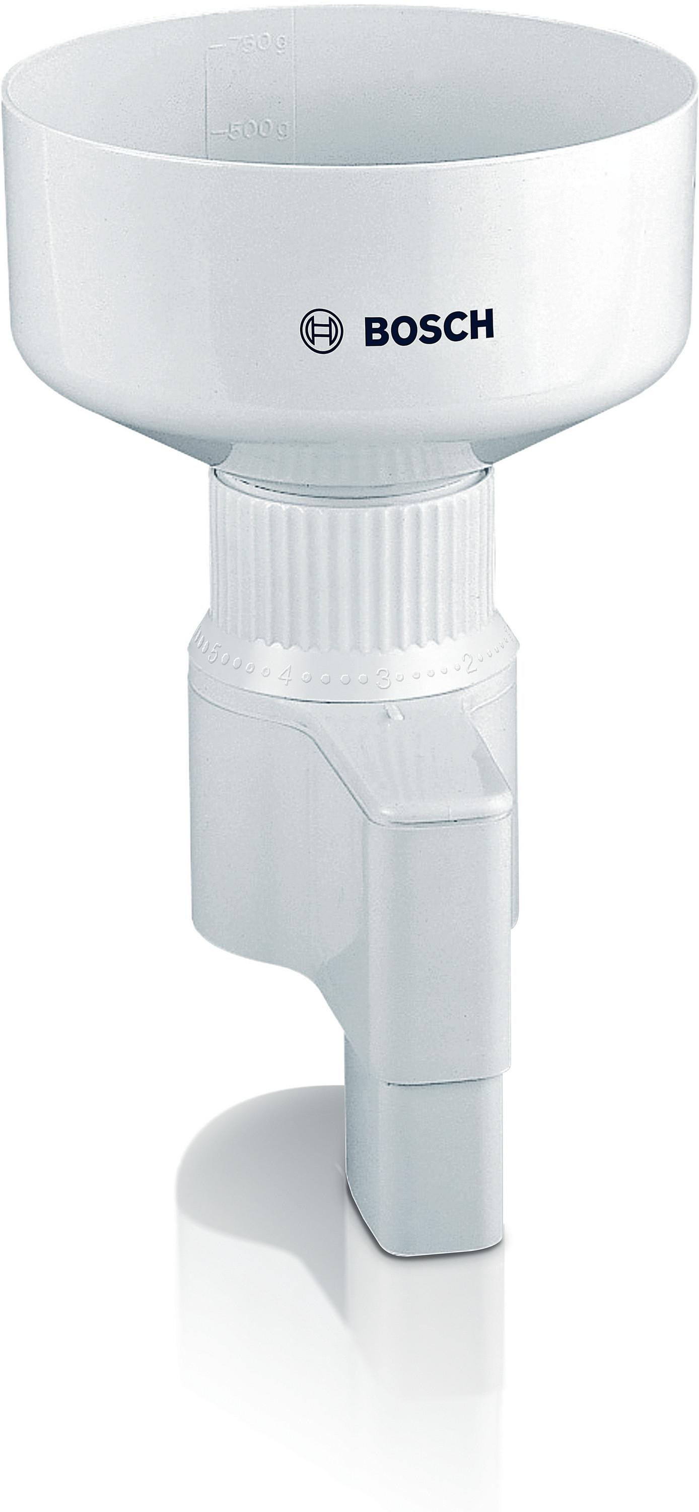 Einfaches und bequemes Mahlen aller Getreidesorten (außer Mais) und Ölsaaten direkt in die Schüssel. - Effiziente Leistung und komfortable Handhabung dank Edelstahlkegel und großem Einfüllschacht. - Stufenlos einstellbarer Mahlgrad von fein bis grob so gelingt jedes Mehl für jede gewünschte Brotsorte perfekt. - Passend für MUM4 (Typennummer: MUM4xxx). - - - - - -