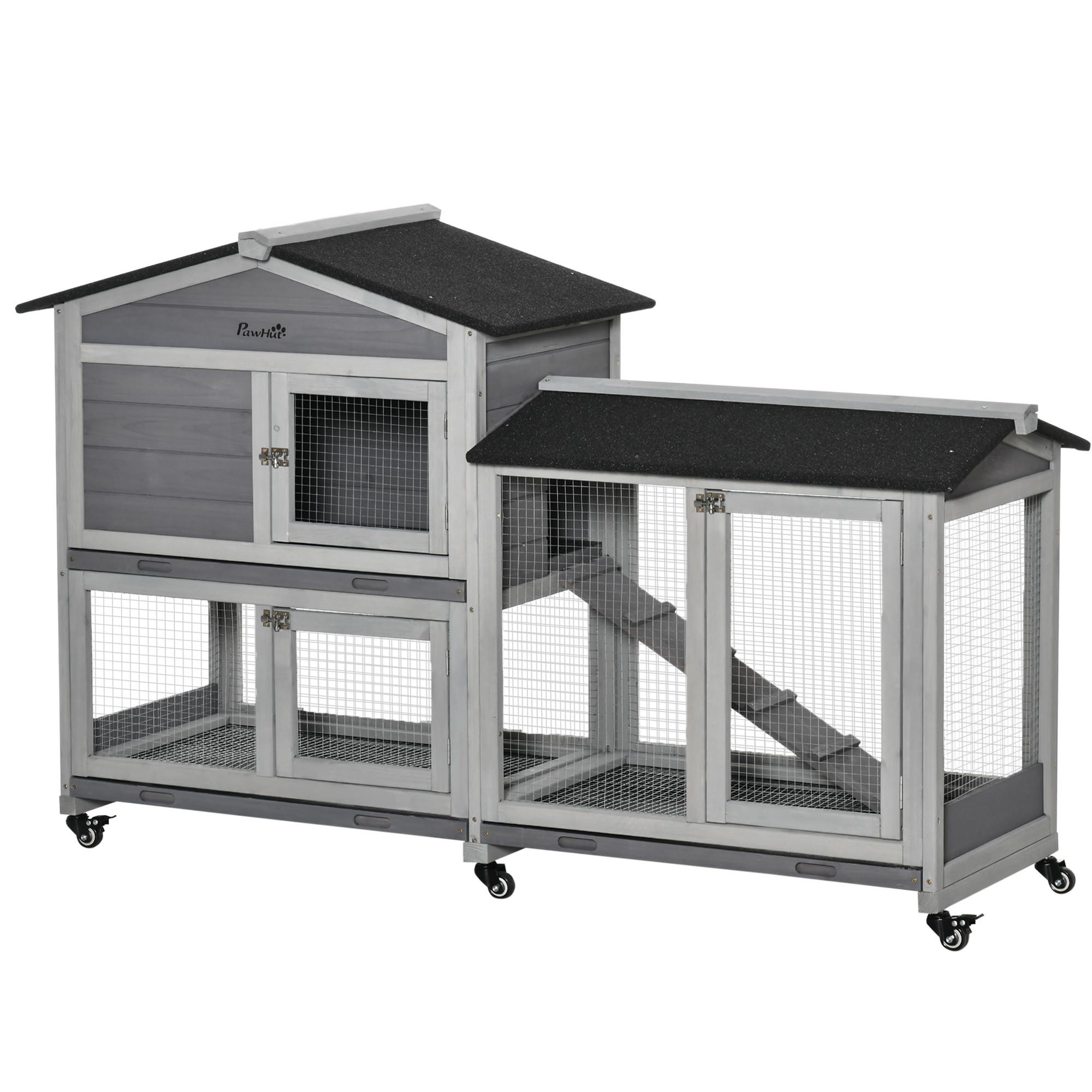 Dieser Kleintierstall von PawHut für den Außenbereich ist perfekt für Zwergkaninchen, Meerschweinchen und andere Tiere ähnlicher Größe. Dieser luxuriöse Zwergkaninchenkäfig aus Holz bietet eine Kombination aus Sicherheit und Freiheit und bietet alle Annehmlichkeiten eines Zuhauses. Der obere Bereich ist für Privatsphäre und Ruhe ausgelegt, während der untere Bereich mehr Platz für Bewegung und Spiel bietet. Holen Sie sich für Ihren pelzigen Freund einen komfortablen Lebensraum von PawHut!