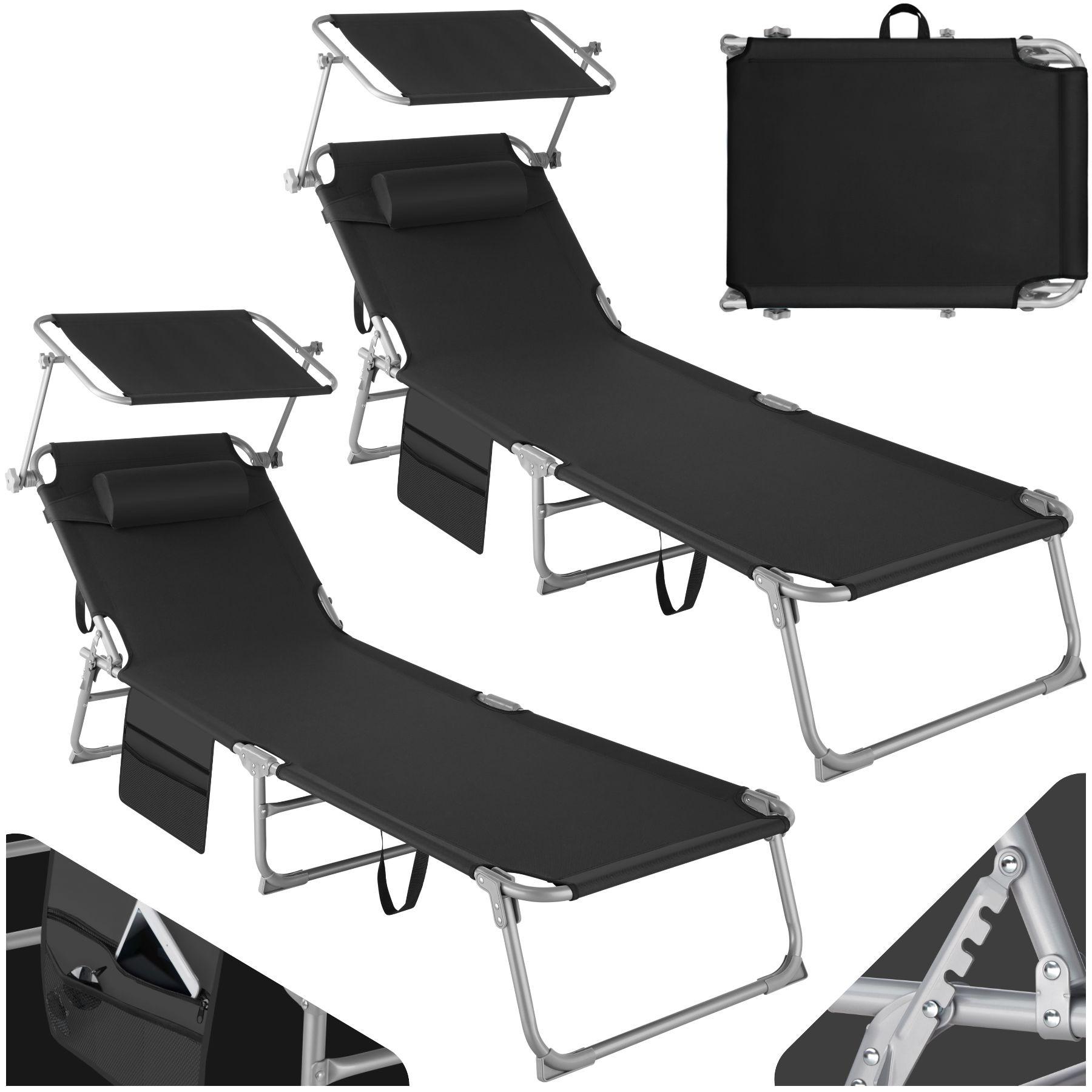 Tectake 2er Set Sonnenliege Chloé klappbar stufenlos verstellbares Sonnendach