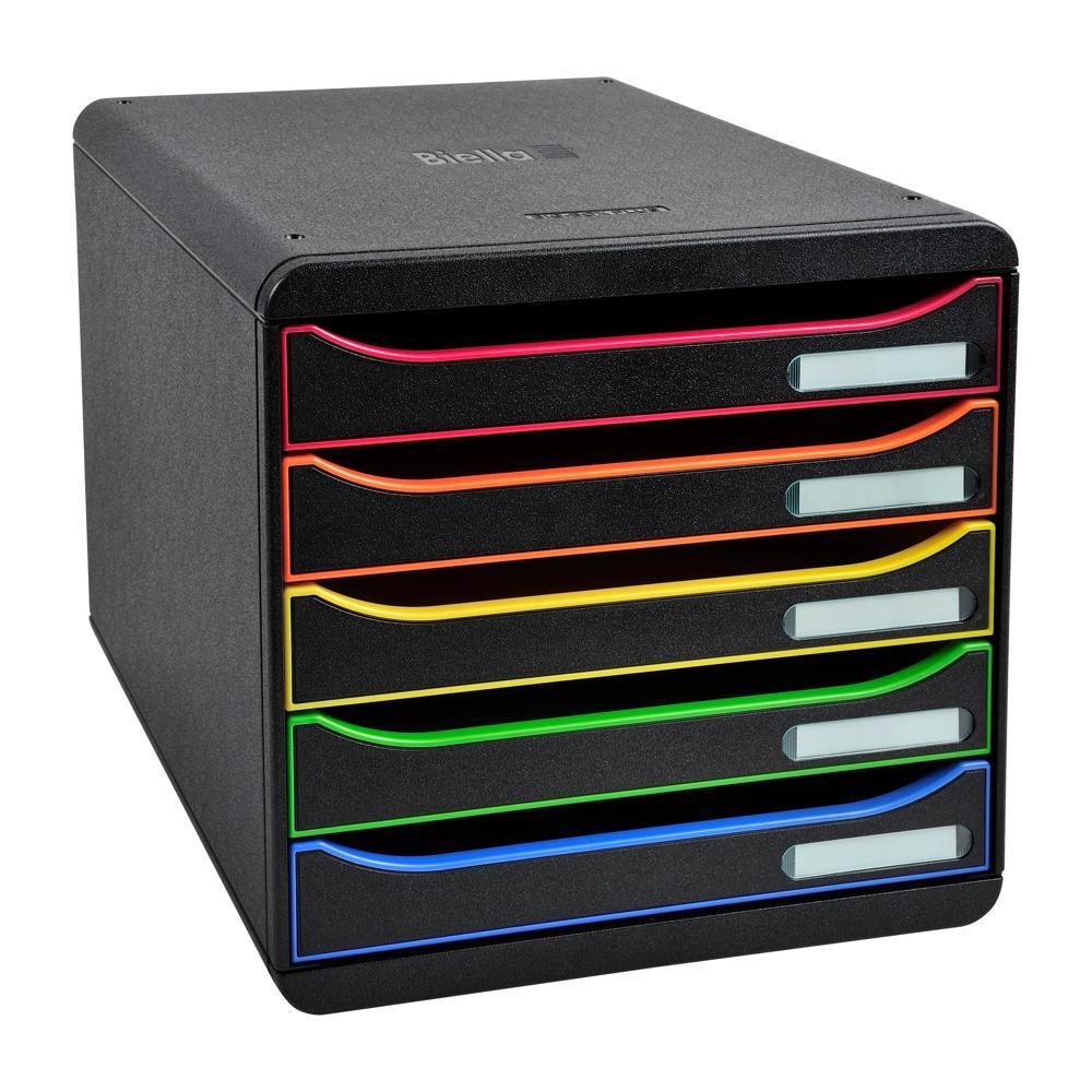 Biella BIG-BOX Ordnungs- und Ablagebox mit 5 offenen Schubladen, 55mm hoch für A4+ Formate. Hoch belastbar. Die offenen Schubladen sorgen dafür, dass das Ablagegut ohne Öffnen der Schublade eingeschoben werden kann. Federleichte Ladenführung mit einzigartigem Stopp-Mechanismus. Zahlreiche Farbkombinationen. Etikettenhalter inkl. Etikettenset «Montag-Sonntag» im Lieferumfang.