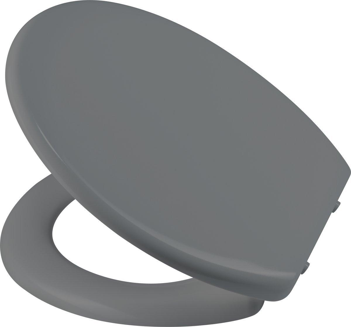 diaqua® WC-Sitz Barbana® XI Slow Down gray 40-45.5 X 37.5 CM 1 - WC-Sitz mit Absenkautomatik für sanftes Schliessen von Deckel und Brille (Slow Down), Einknopfdrucktechnik mit praktischer Betätigung, zum Reinigen einfach abnehmbar (Easy Cleaning Push). Rasche Montage durch verstellbare und einfache Befestigung, aus pflegeleichtem und langlebigem Duroplast, universelle Passform für alle handelsüblichen WC-Anlagen, inkl. Befestigungsmaterial.