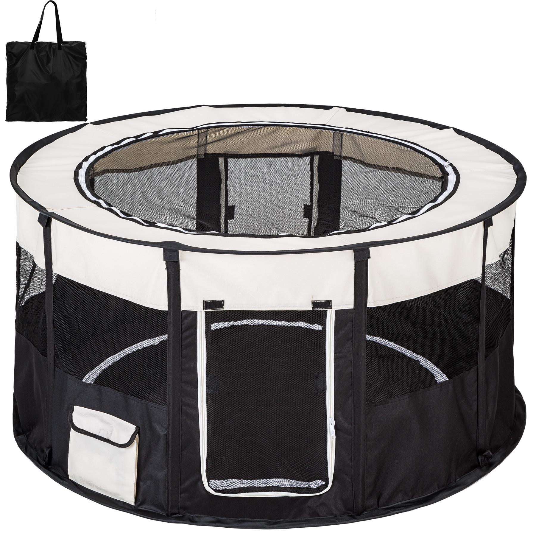 Tectake Welpenlaufstall Carola aus Polyester mit Tragetasche