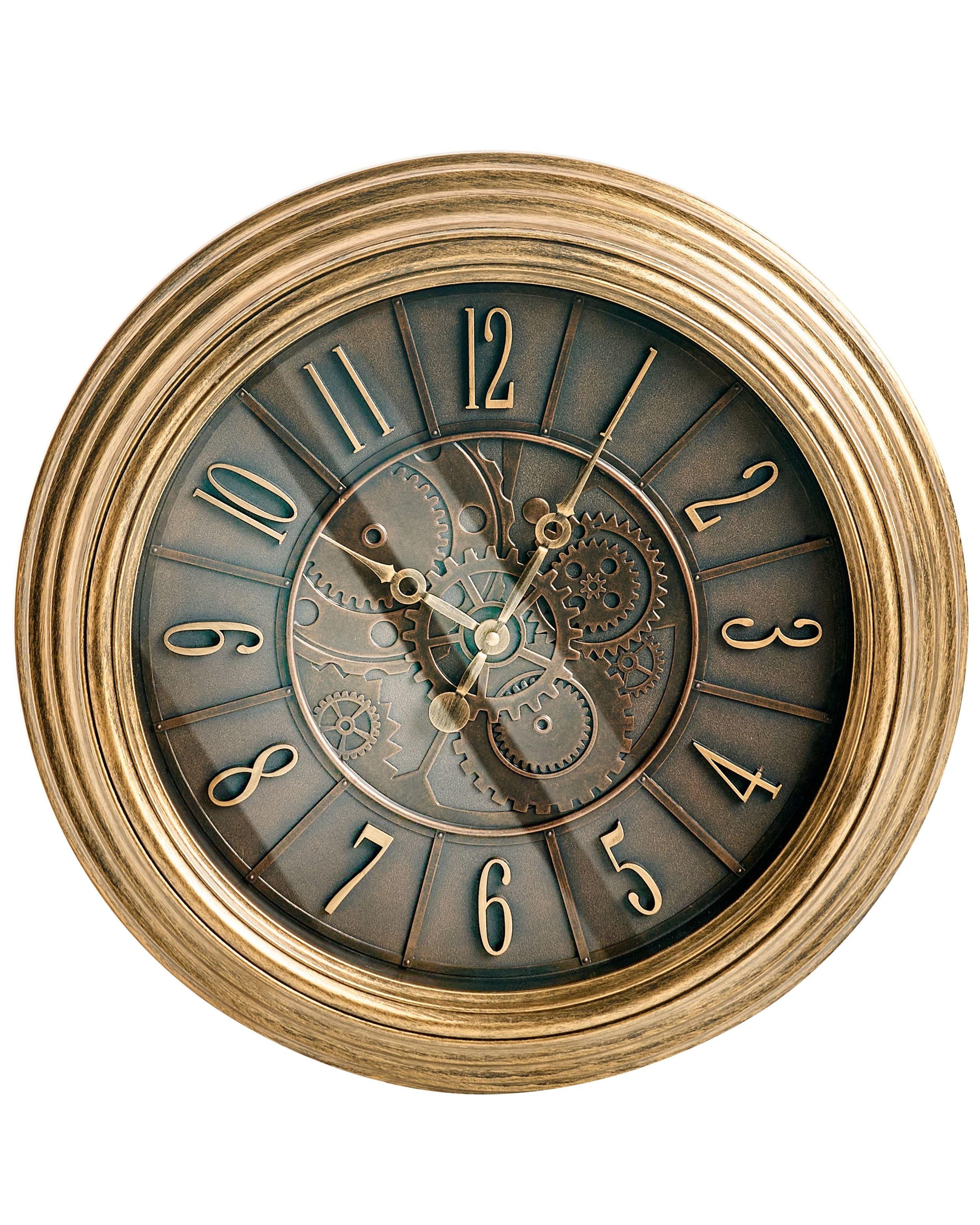 Klassische Wanduhr mit arabischen Ziffern. Diese elegante Wanduhr überzeugt mit einem vintage-inspirierten Design, sichtbaren dekorativen Zahnrädern und einem warmen, antik wirkenden Rahmen. Hergestellt aus hochwertigem synthetischem Material, vereint sie Langlebigkeit mit stilvollem Aussehen. Die grossen, gut lesbaren Ziffern machen sie zu einem praktischen und zugleich dekorativen Blickfang für jeden Raum.