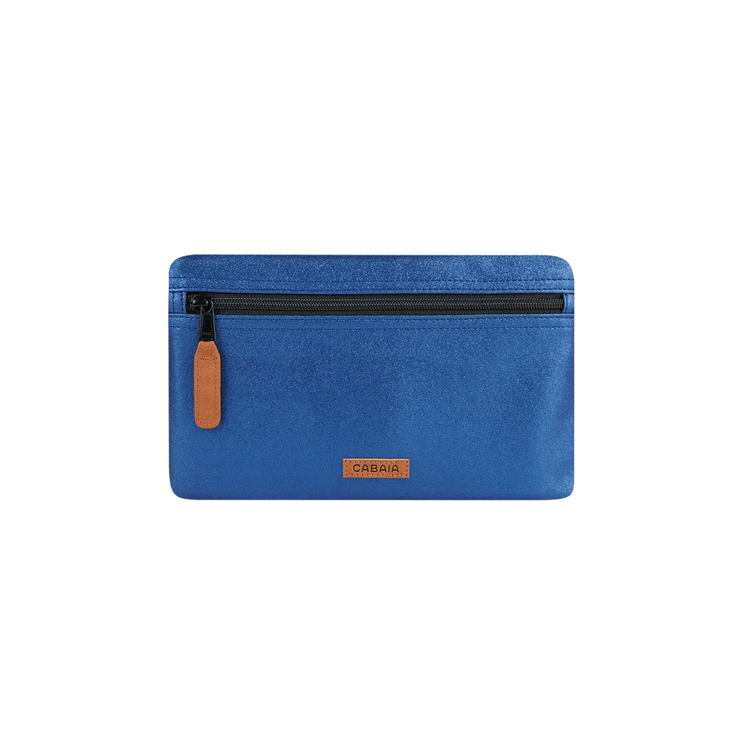 Die Moon Front Pocket ist in Blau erhältlich, einer raffinierten und eleganten Farbe, die verschiedene Stile perfekt ergänzt. Die Tasche verfügt auch über ein Cabaia Logo in braunen Buchstaben, gedruckt auf einem beigen Canvas-Etikett, was einen Hauch von Persönlichkeit verleiht.