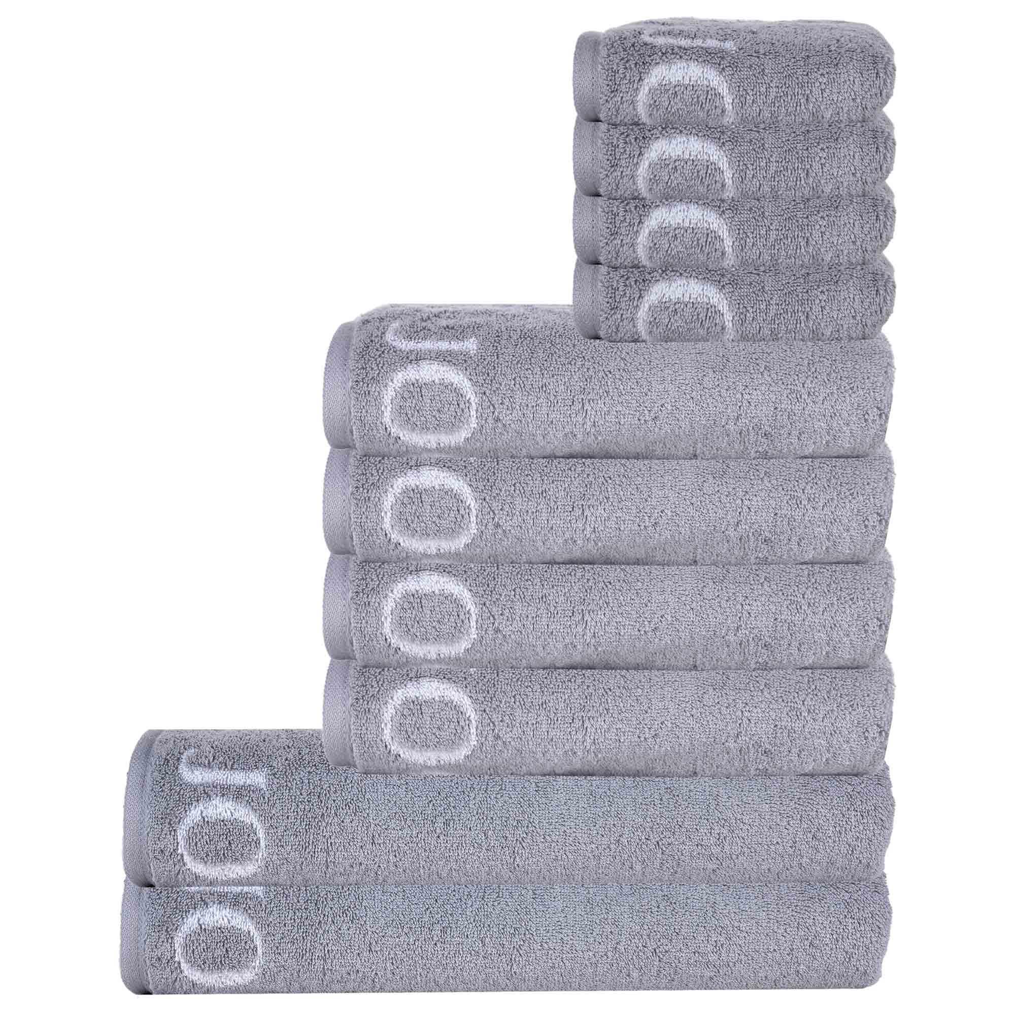 Elegante Handtuch-Serie von der Marke JOOP!. Set bestehend aus 2 Duschtüchern, 4 Handtüchern und 4 Gästetüchern. Flauschiger Walkfrottier aus reiner Baumwolle.