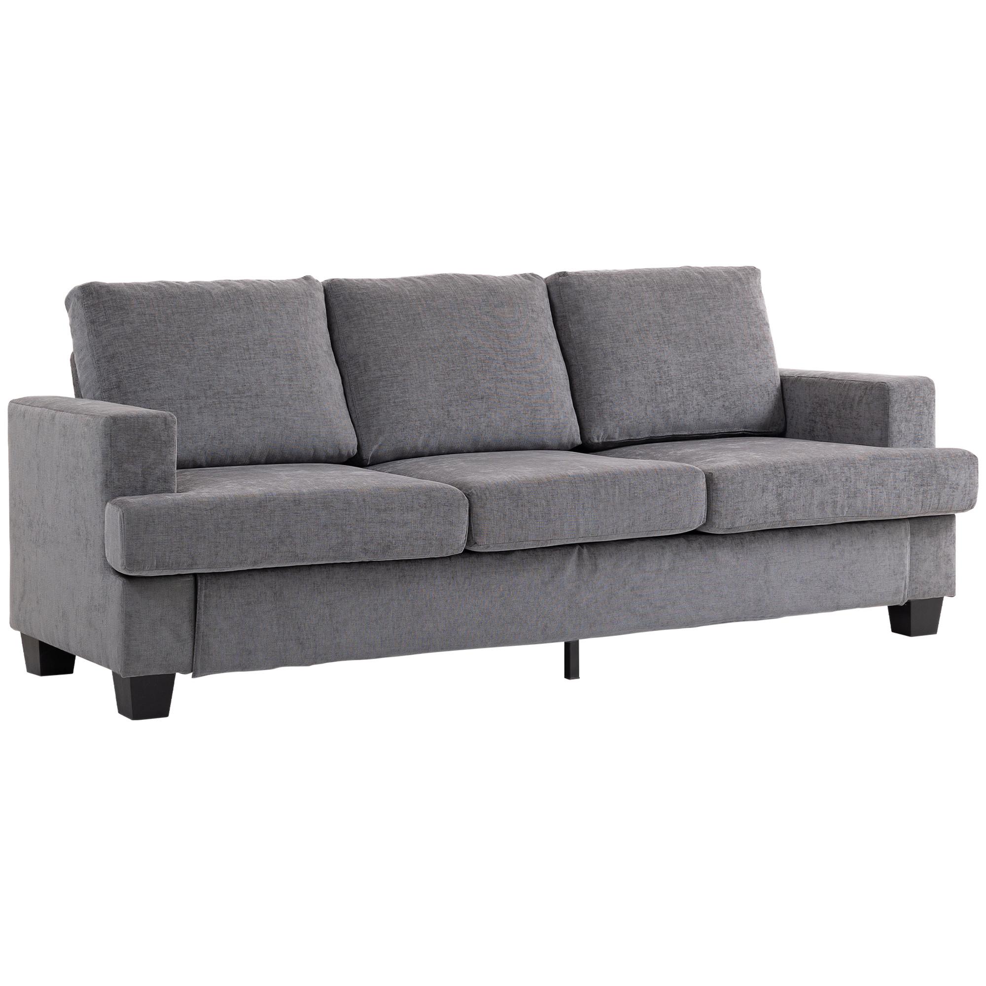 Erleben Sie den Komfort des HOMCOM 3 Sitzer Sofas. In weichen Stoff mit Chenille-Optik gehüllt, lädt es zum Entspannen auf dem weichen Kissen ein und bietet gleichzeitig durch einen stabilen Stahlrahmen festen Halt. Ideal für stilvolle Entspannung gestaltet, verwandelt dieses Küchensofa Ihr Wohnzimmer in einen Ort der Ruhe und fügt einen eleganten Touch hinzu.