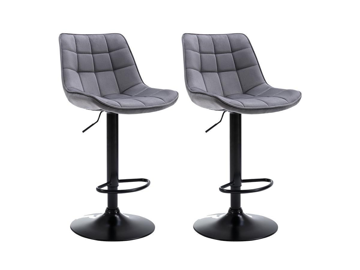 Vente-unique, Barhocker 2er-Set - Samt & Metall - Grau - LIMA II