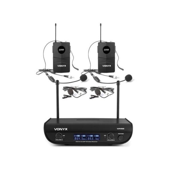 Wandlerprinzip: Dynamisch, Richtcharakteristik: Niere, Bauweise: Empfänger, Headset, Taschensender, Lavalier, Anschlüsse: XLR, 6.3 mm Klinke, Signalverarbeitung: Digital, Betriebsart: NetzbetriebSender mit Anzeige, die die Frequenz und den Batteriefüllstand anzeigenMit 2 Headsets und 2 Clip-MikrofonenDoppelempfänger mit blauer Anzeige2x symmetrische XLR-Ausgänge und ein unsymmetrische Mischsignal via 6.3 mm KlinkenausgangKompakter UHF-Empfänger mit 2 TaschensendernJeder Kanal verfügt über eine LautstärkeregelungLieferumfang:Empfänger2x Bodypack2x Headset2x Lavalier MikrofonNetzteilKoffer