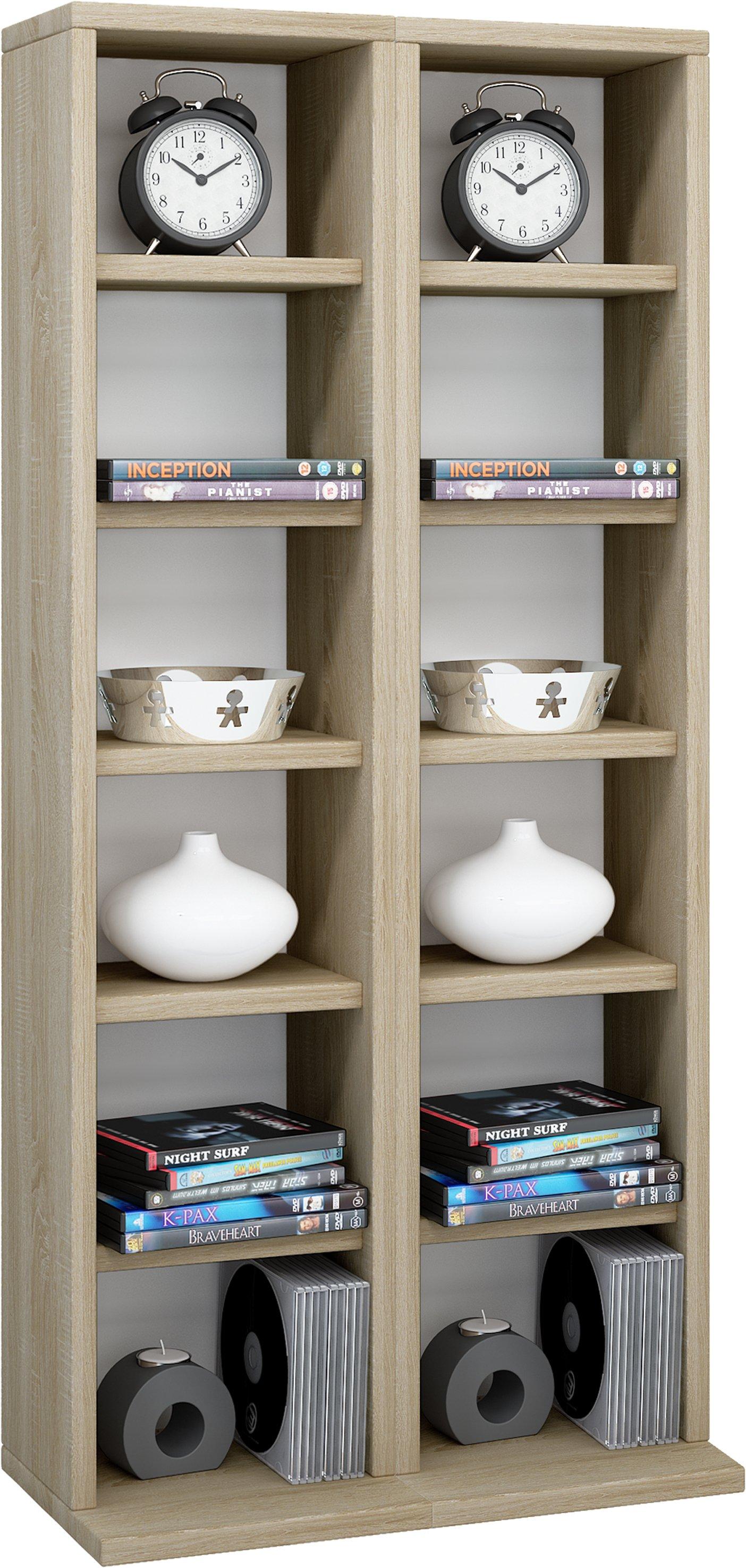 VCM Holz CD DVD Stand Regal | CD Regal mit Platz für 204 CDs oder 72 DVDs oder 40-Videos | Maße: H. 92 x B. 42 x T. 20 cm | Elegantes CD/DVD Regal | Blu