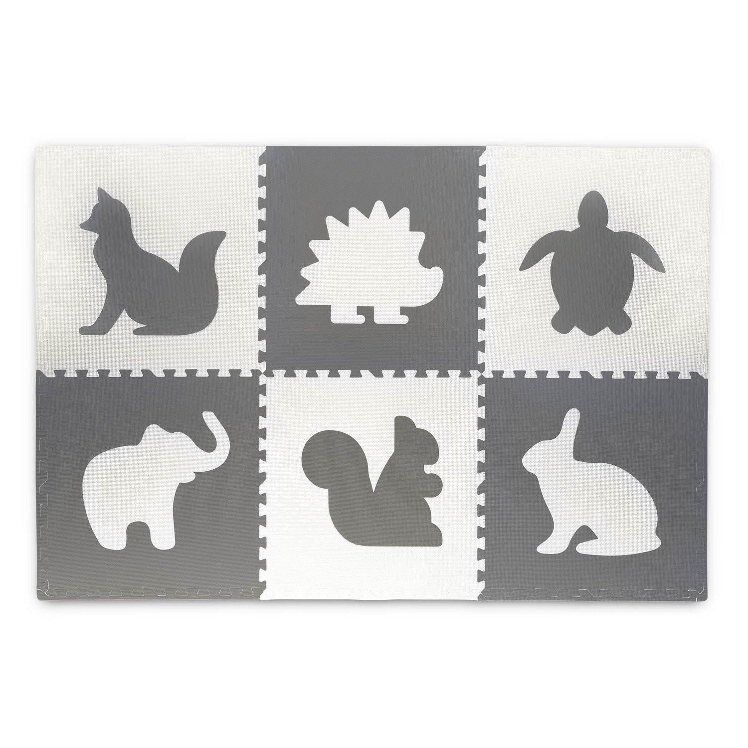 B2X  Große Moosgummimatte, Puzzle, Tiermotiv in Weiß und Grau, 6-teilig