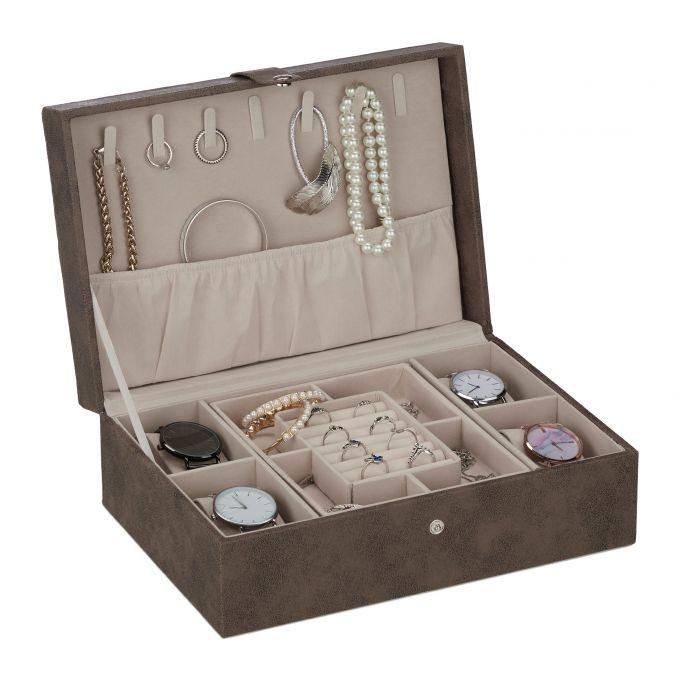 - Merkmale: Mehrere Fächer, Haken für Halsketten, Ringhalter
