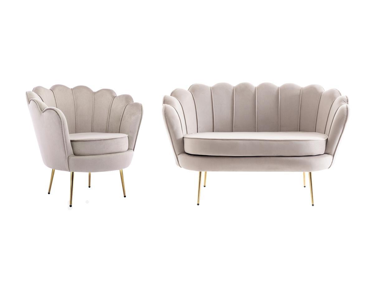 - Sorgfältige Verarbeitung: Jedes Detail von Sofa und Sessel ist darauf ausgelegt, Ihnen maximalen Komfort und kompromisslose Ästhetik zu bieten. Sie werden die Raffinesse der elegant gearbeiteten Paspeln an der Rückenlehne und die goldfarbenen Metallbeine zu schätzen wissen, die für einen trendigen Touch sorgen.