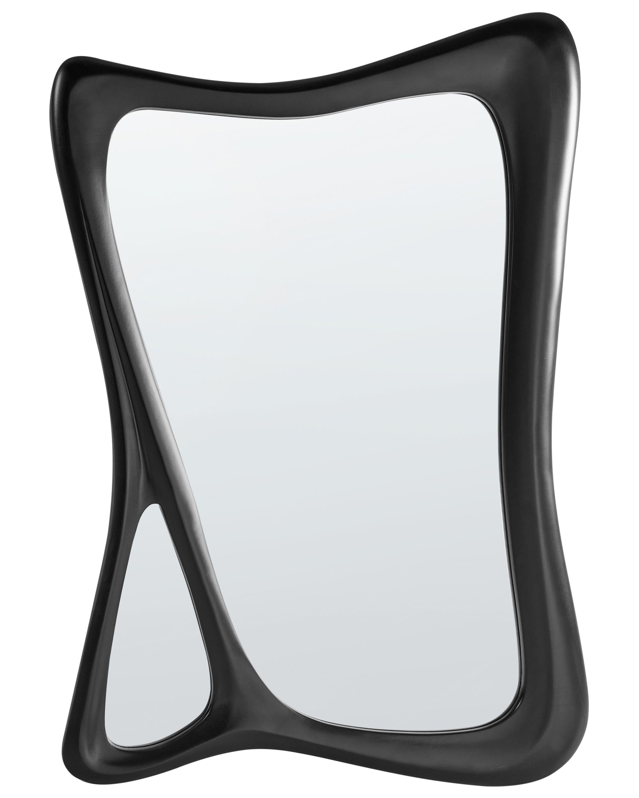 Moderner Spiegel mit gebogenem schwarzem Rahmen. Verleihen Sie Ihrem Raum mit diesem einzigartig geformten Wandspiegel mehr Attraktivität und Funktionalität. Seine unregelmässige Form und die glatte, schwarze Oberfläche verleihen ihm einen markanten, modernen Look, der jeden Raum aufwertet. Die grosse spiegelnde Fläche reflektiert das Licht, hellt den Raum auf und schafft ein Gefühl von Offenheit – eine nützliche Eigenschaft in kleineren oder schwach beleuchteten Bereichen. Der Spiegel besteht aus einem strapazierfähigen Kunststoffrahmen, ist leicht zu reinigen und lässt sich mühelos mit modernen Möbeln und Einrichtungsgegenständen kombinieren. Ob im Flur, im Schlafzimmer oder über einer Anrichte – dieser Spiegel wird überall zum Blickfang.