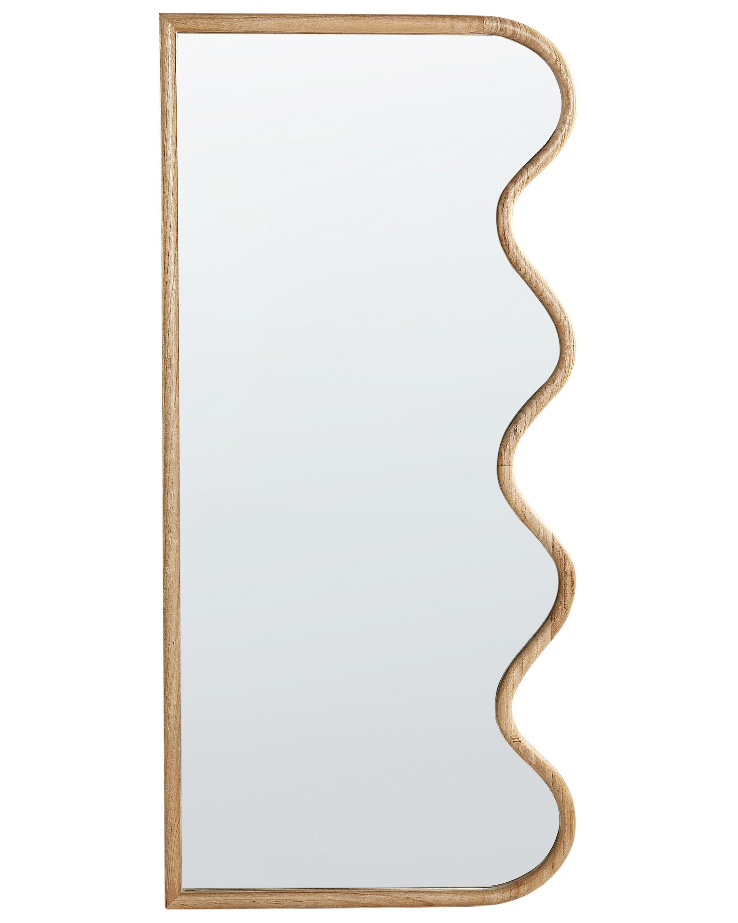 Handgefertigter asymmetrischer Spiegel. Verschönern Sie Ihr Zuhause mit diesem stilvollen Ganzkörperspiegel. Ideal für Flure oder Schlafzimmer, verleiht der elegante Holzrahmen jedem Raum eine natürliche Wärme. Das wellenförmige Design sorgt für einen einzigartigen Blickfang, während die hohe Form eine elegante und praktische Möglichkeit bietet, Ihr Outfit vor dem Verlassen des Hauses zu checken.