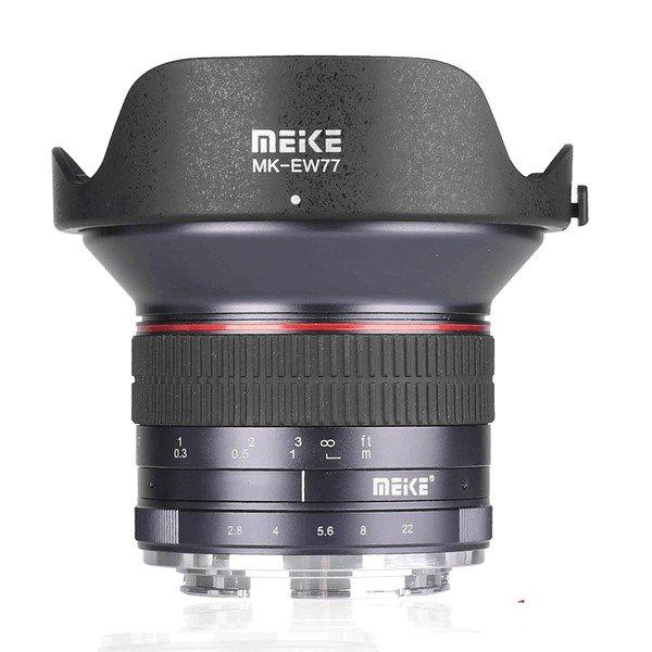 Brand Meike Ultra -Weitwinkel vom Objektiv Typ Kompatible Montage Fujifilm x Kameraobjektiv Beschreibung 9 Maximale Brennweite 12 Millimeter Über diesen Artikel Konstruiert aus 12 Glaselementen in 10 Gruppen mit Blendenbereich von F2.8 - F22 Mindestfokussierungsabstand von nur 3,94 Zoll Für Spiegel weniger Kameras gebaut; nimmt eine 72 -mm -Filtergröße Objektiv nicht zoombar Beinhaltet abnehmbare Objektivhaube, Objektivbeutel