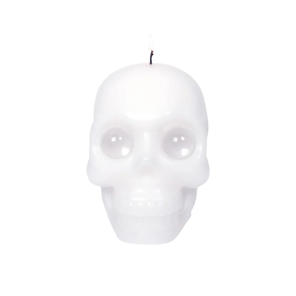 Totenkopf war gestern. Diese Kerze schaut dich an. Zwei kristallklare Augen erwachen im Flammenschein zum Leben, bevor sie in der Hitze der Nacht zurück in den Schädel rollen. Gänsehaut garantiert. Die Skull-Kerze weiss ist nichts für schwache Nerven. In ihrem Inneren verbergen sich zwei künstliche Kristallaugen, die im Schein der Flammen unheimlich aufleuchten, bevor sie langsam zurück in die Tiefe des Schädels sinken. Die Masse: ca. 14 × 11,5 × 11,5 cm (5,5 × 4,5 × 4,5 Zoll). Mit zwei Dochten und einer Brenndauer von rund 20 Stunden sorgt diese Kerze für ein eindrückliches Erlebnis. Gefertigt aus Paraffinwachs und künstlichen Kristallen, verpackt in einer nachhaltigen Geschenkbox, ist sie das perfekte Accessoire für Gothic-Fans, Rockliebhaber oder einfach alle, die das Aussergewöhnliche suchen. Die Kerze tropft beim Brennen. Stelle sie deshalb unbedingt auf einen Teller mit einem Durchmesser von mindestens 25 cm (10 Zoll). Entworfen wurde dieses makabre Meisterwerk von der isländischen Designerin Thorunn Arnadottir.