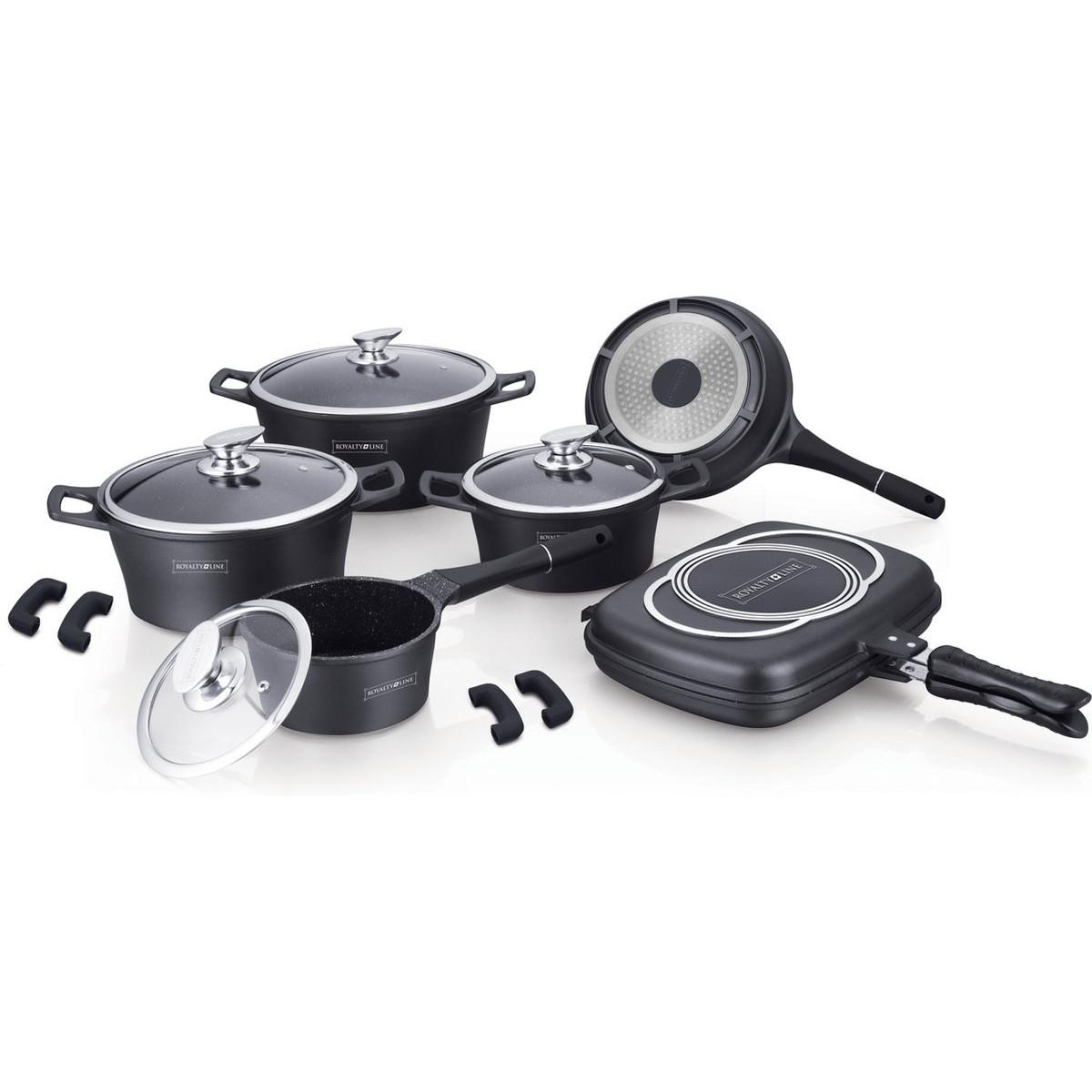 Royalty Line 15-teiliges Stielkasserollen-Set mit Marmorbeschichtung - Schwarz