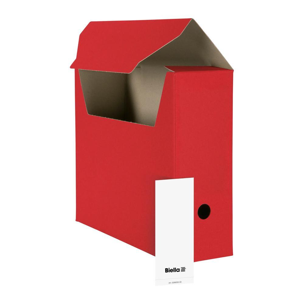 Biella Archivschachteln aus stabilem Karton für die Archivierung ihrer Unterlagen. Mit selbstklebendem Rückenschild für die individuelle Beschriftung. Mit praktischem Griffloch und Einsteckdeckel. Für Format A4, Aussenmasse 10 x 27 x 33 cm. Flachliegend geliefert. Beutel zu 10 Stück.
