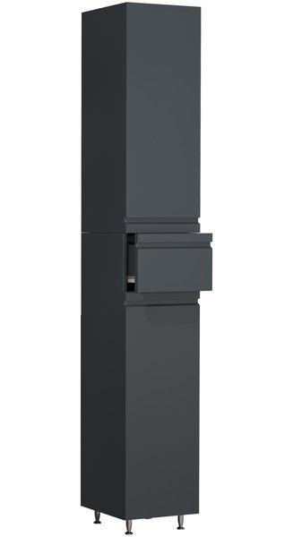 VCM, Holz Badmöbel Badregal Badezimmer Badschrank Hochschrank grifflose Schublade Drehtüren Silora
