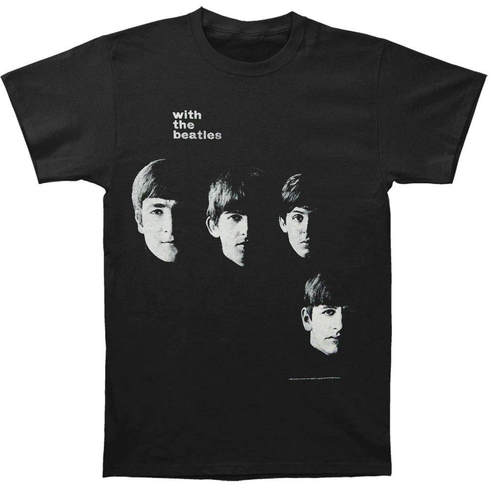 Dieses T-Shirt zeigt das ikonische Albumcover von The Beatles' zweitem Studioalbum "With The Beatles". Die Vorderseite des Shirts zeigt das klassische Schwarz-Weiss-Bild der Bandmitglieder, während die Rückseite das Schlagzeug-Logo von The Beatles zeigt.
