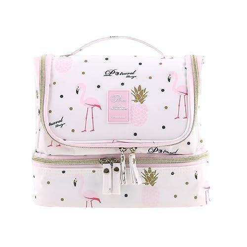 Gut gemacht & stilvoll - Dieser Reise-Kulturbeutel ist aus 75D Memory-Gewebe-Druck hergestellt, um gemeinsame Bad verschüttet zu widerstehen. Das personalisierte Flamingo-Muster macht sie zu einem schönen Accessoire! Mehrere Fächer - Jeder Kulturbeutel für Frauen ist mit mehreren Netz- und Reißverschlusstaschen ausgestattet, um Cremes, Rasierapparate, Seife, Bürsten und mehr zu speichern. * Geräumig und robust - Die Kulturtasche ist groß genug, um viele Toilettenartikel zu verstauen, aber klein genug, um sie im Handgepäck mitzunehmen. Helfen Sie beim stressfreien Packen!