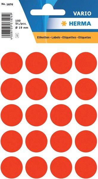 HERMA, HERMA Etiketten rund 19mm 1876 leuchtrot 100 Stück