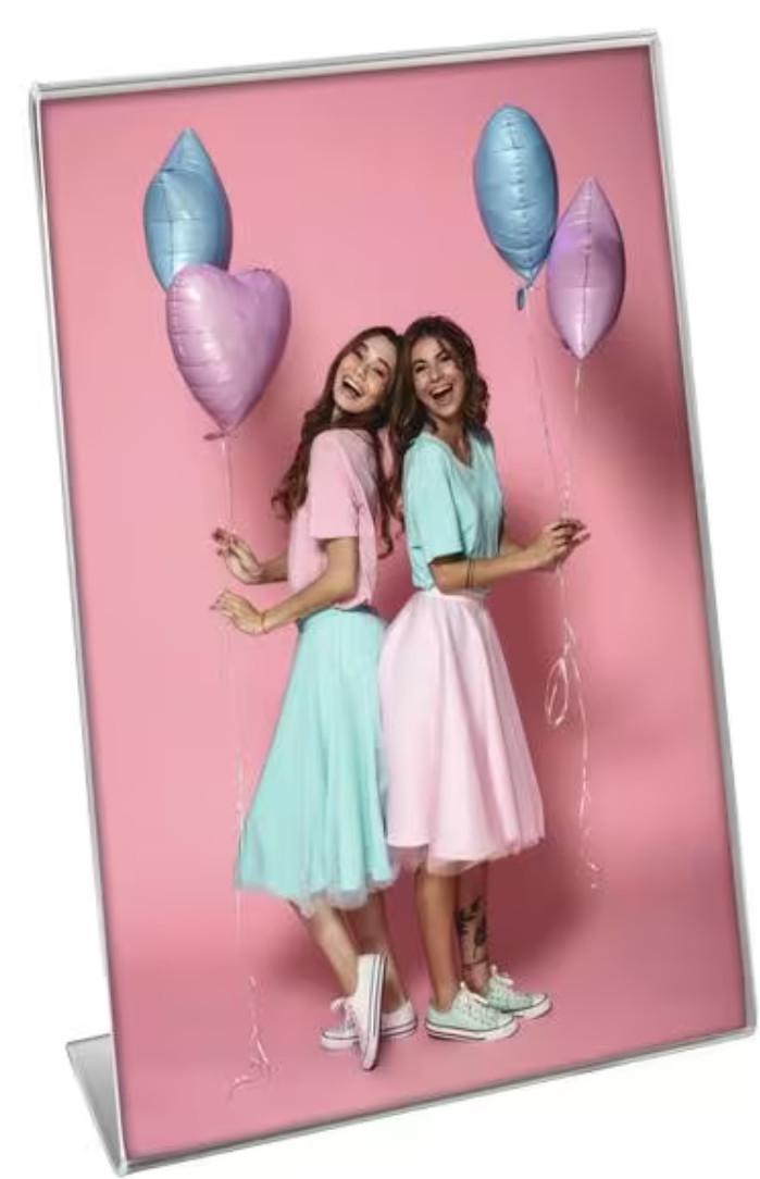 Schlichter Acrylrahmen mit grosser Bildwirkung Aufsteller in L-Form integriert Mit Aufhängevorrichtung Farbe: Transparent Dimensionen: 4.5x9.5x13.5cm