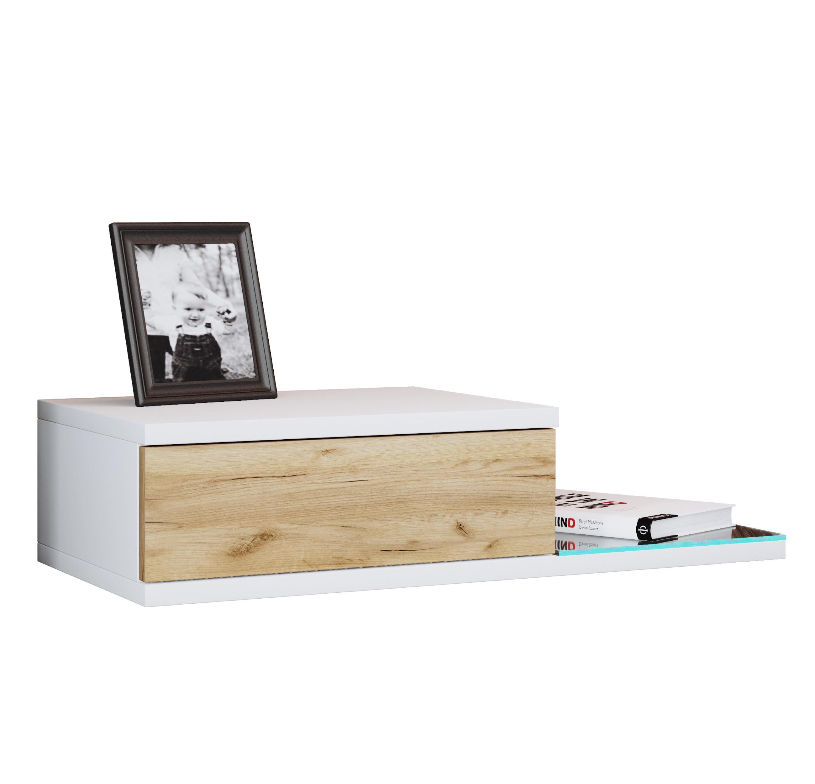 VCM, Holz Wandschublade Nachtschrank Wandboard Schublade Konsole Nachttisch Konsila L