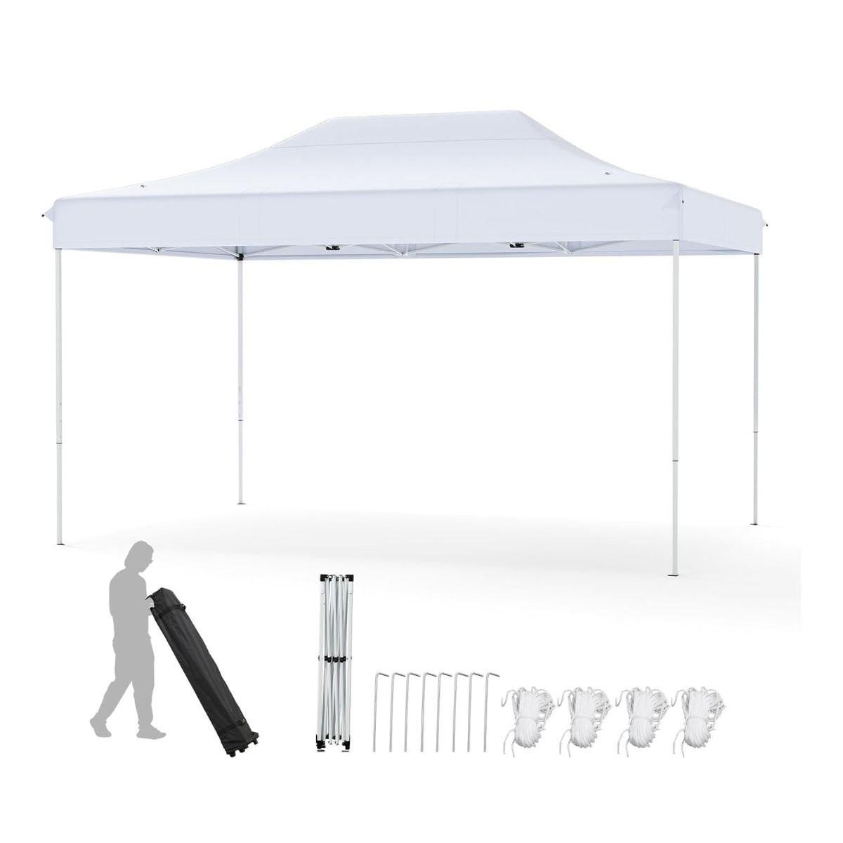 Optimieren Sie Ihr Eventerlebnis mit dem Pop-up-Pavillon. Er bietet eine großzügige Fläche von 300 x 445 cm für Veranstaltungen im Freien. Dieses hochwertige Zelt ist aus reißfestem, wasserabweisendem Stoff gefertigt und hält so unterschiedlichen Wetterbedingungen stand.
