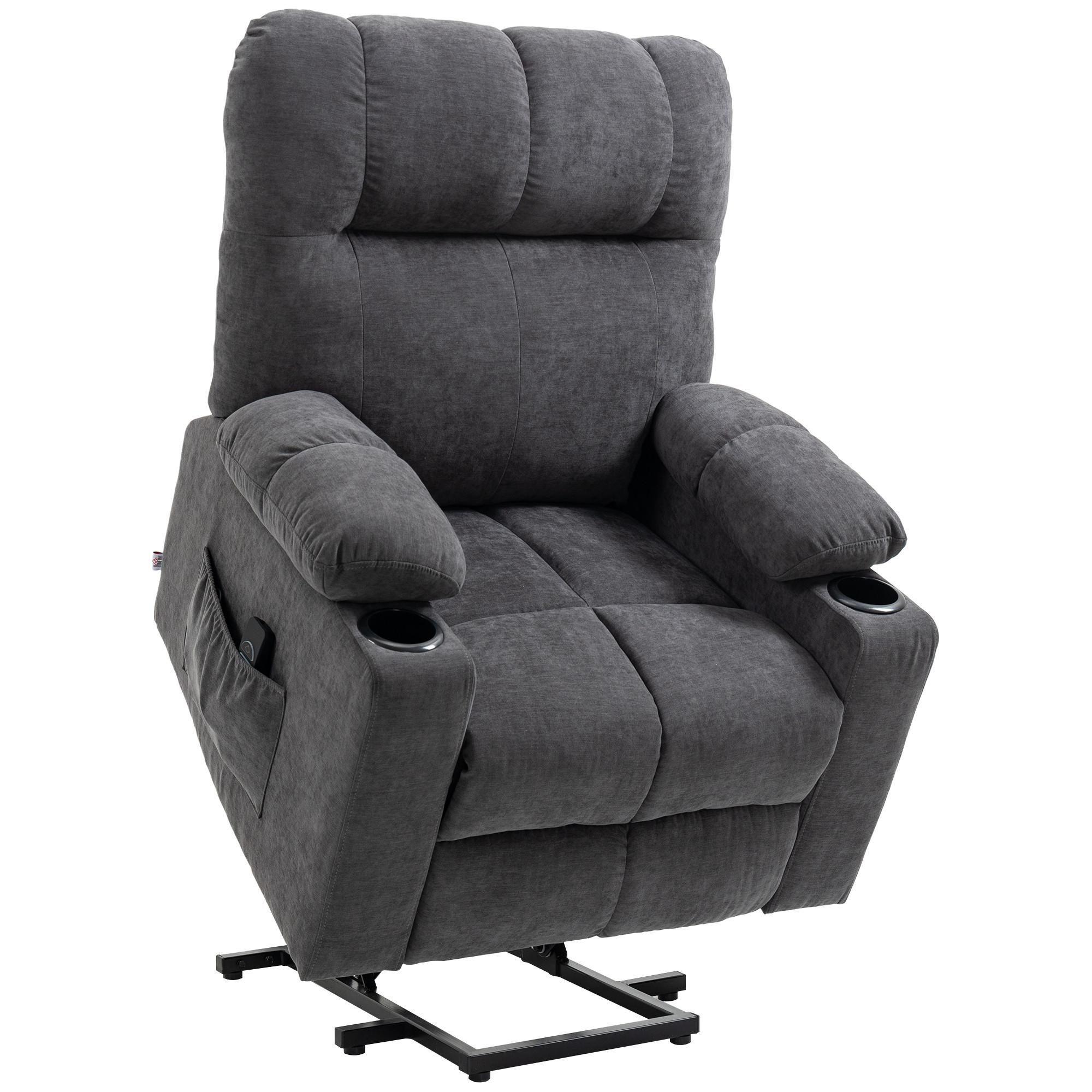 Die Art und Weise, wie Sie sich entspannen, wird sich für immer verändern, dank dieses Fernsehsessels mit Aufstehhilfe von HOMCOM. Legen Sie Ihre Füße auf die eingebaute Fußstütze und stellen Sie die Rückenlehne in Ihre Lieblingsposition ein - lehnen Sie sich zurück, schauen Sie fern oder machen Sie ein Nickerchen. Sie werden auf dick gepolstertem, weichem Stoff ausruhen, während die acht Massagepunkte des Relaxsessels zur Linderung von Muskelverspannungen beitragen.