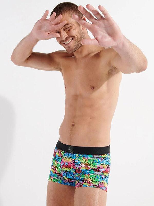 Diese Boxer Briefs präsentieren einen lebendigen Graffiti-Wand-Print, der einen kühnen und ausdrucksstarken Stil bietet. Das Design kombiniert Komfort mit einer unverwechselbaren Ästhetik und macht sie zu einer einzigartigen Ergänzung jeder Unterwäschekollektion. Der Aufdruck ist eine Kreation des französischen Künstlers Vincent Bardou.