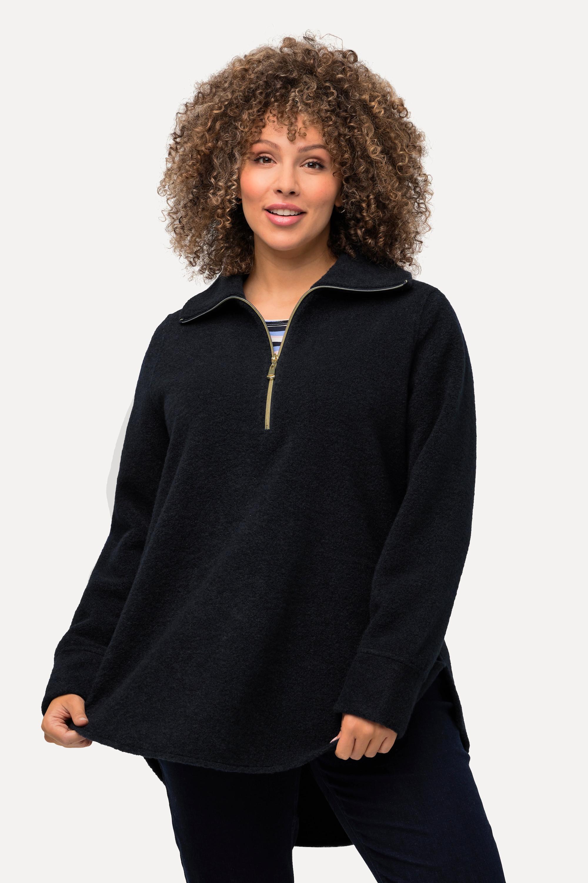 Ulla Popken A-Linie Fleeceshirt Stehkragen Zipper Langarm