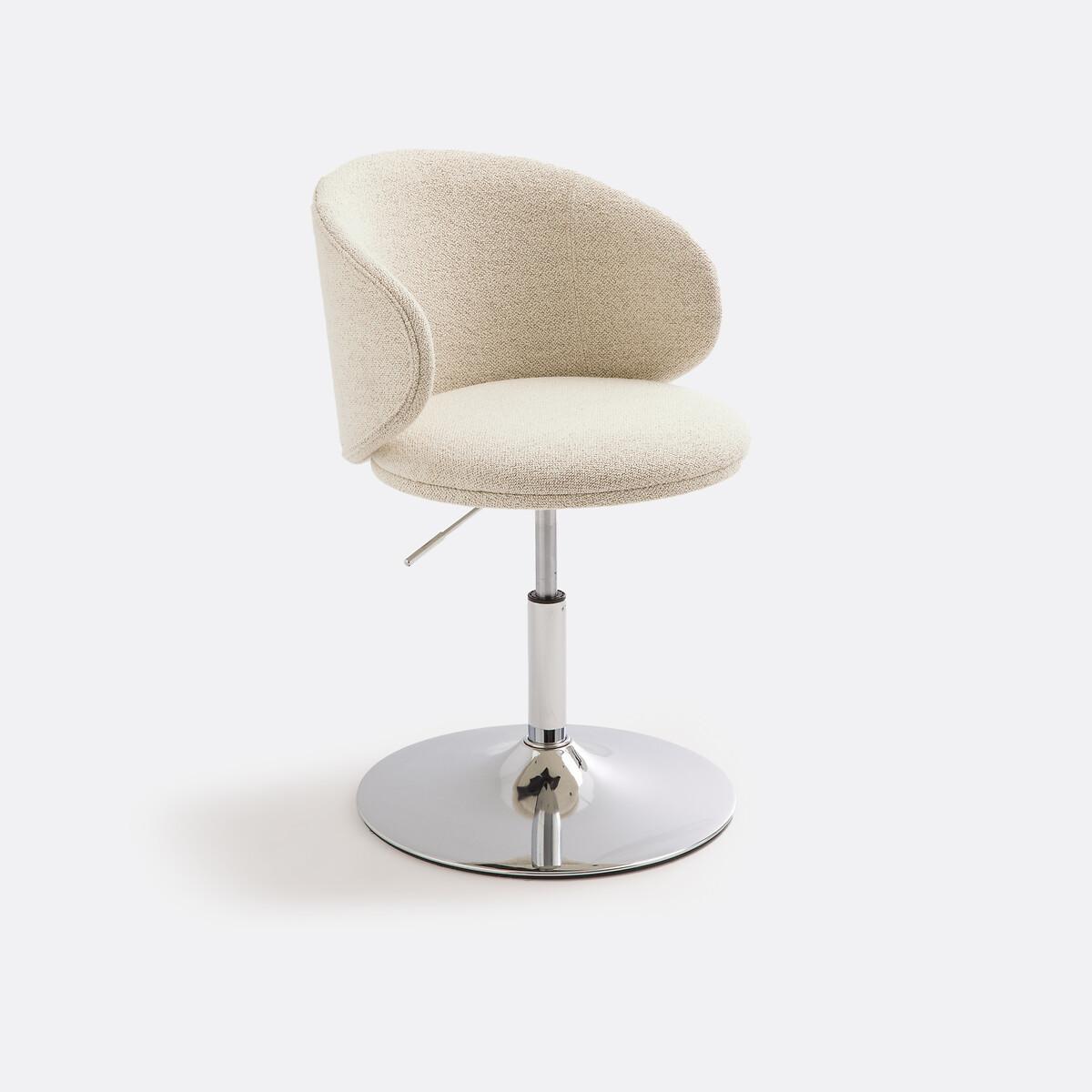 Der Bürostuhl Jakemo ist eine perfekte Kombination aus Bouclé-Stoff und verchromtem Stahl, inspiriert vom Pop-Trend der 70er Jahre. Umhüllende Form und drehbarer Sitz... Sie werden Ihr Home Office lieben.
