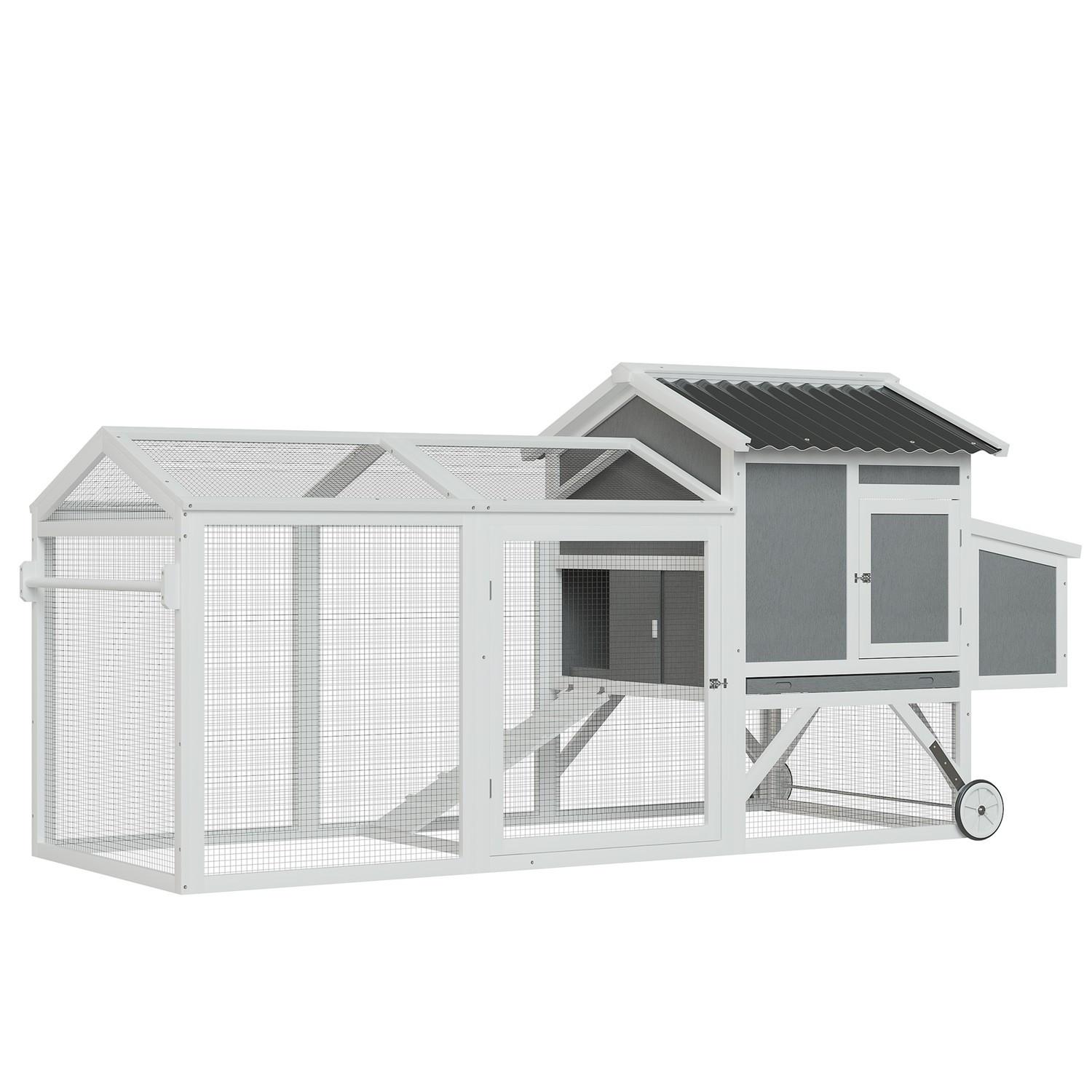 Northio Hühnerstall Mobil Nistkasten Räder Hühnervoliere winterfest Tannenholz/PVC Grau+Weiß