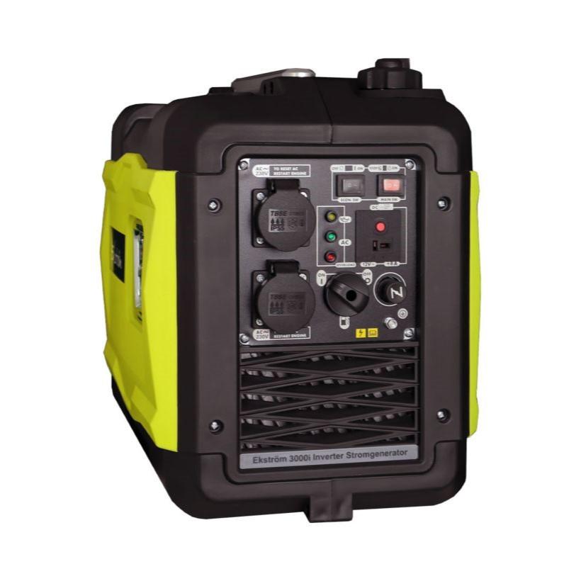 Mit dem Inverter Stromgenerator 3000i von Ekström können Sie an unterschiedlichen Orten Strom erzeugen. Sei dies an einer Party draussen in der Natur, im Gartenhäuschen im Schrebergarten oder auch auf dem Campingplatz.Geeigneter Treibstoff: BenzinNur Inbetriebnahme mit bleifreiem Benzin möglich. Bleihaltiges Benzin verursacht im Motor ernsthafte Schäden.Tankkapazität: Total 4.0 LEmpfohlenes Motorenöl: SAE SJ 15W-40Empfohlene Ölsorte: API Service Typ SE oder höherÖlmenge: 0.35LNutzung nur im Outdoorbereich möglichSobald der Ölpegel unter den Tiefstand fällt, schaltet sich das Warnlicht ein und der Motor stellt sich automatisch aus.Der Stromgenerator darf niemals an das reguläre Stromnetz eines Hauses angeschlossen werden.Wenn mit dem Generator medizinische Geräte betrieben werden sollen, sollte vorab Informationen beim Fabrikanten oder medizinischen Facheinrichtungen eingeholt werden.Um den Generator gefahrenlos, ökonomisch und störungsfrei nutzen zu können, muss dieser gewartet werden.Leistungsfaktor: 1Ladespannung DC : 12 VLadestrom DC : 8 AÜberlastungsschutz DC: Keine SicherungTankkapazität : 4 LiterBenzinverbrauch : 400 g/KWLaufdauer (zu Nennleistung) : 5 hEin Inverter Stromgenerator erzeugt im Vergleich zu einem herkömmlichen Generator einen sparsameren, Emission ärmeren und leiseren Strom. Dieser Inverter erzeugt einen sehr sauberen Strom, der sich sogar für sensible Elektronik eignet. Die Wattangabe auf dem Gerät gibt an, was das Gerät verbraucht, wenn es allein genutzt wird. Das gleichzeitige Nutzen von AC und DC-Storm ist möglich, sollte aber die Gesamtwattzahl der Nennleistung nicht überschreiten. Das Überlastungsanzeigelicht leuchtet auf, wenn die gesamte Wattleistung die Nennleistung des Generators überschreitet.Achtung:Beim Umgang mit dem Stromgenerator ist grosse Vorsicht geboten, da es bei Missachten der Betriebsanleitung sehr gefährlich werden kann.
