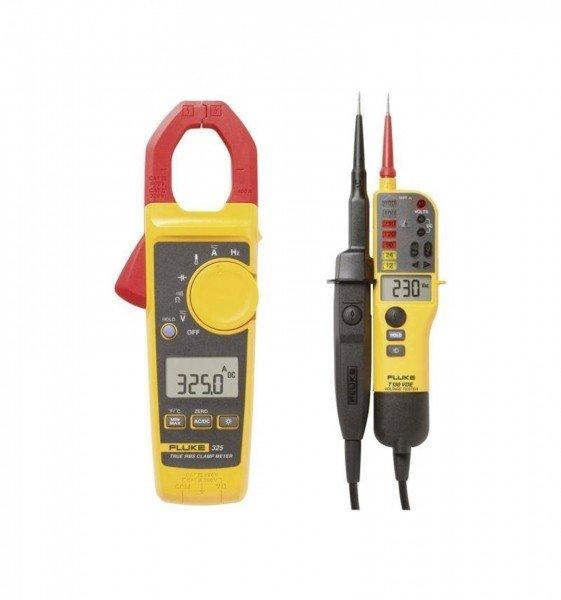Fluke Strommesszange 325 + T130VDE, Funktionen: Wechselstrom, Wechselspannung, Widerstandsmessung, Gleichspannung, Kapazitätsmessung, Durchgangsprüfung, Frequenzmessung, Gleichstrom, Anwendungsbereich: Elektrotechnik, Typ: Zangenstrommessgerät.