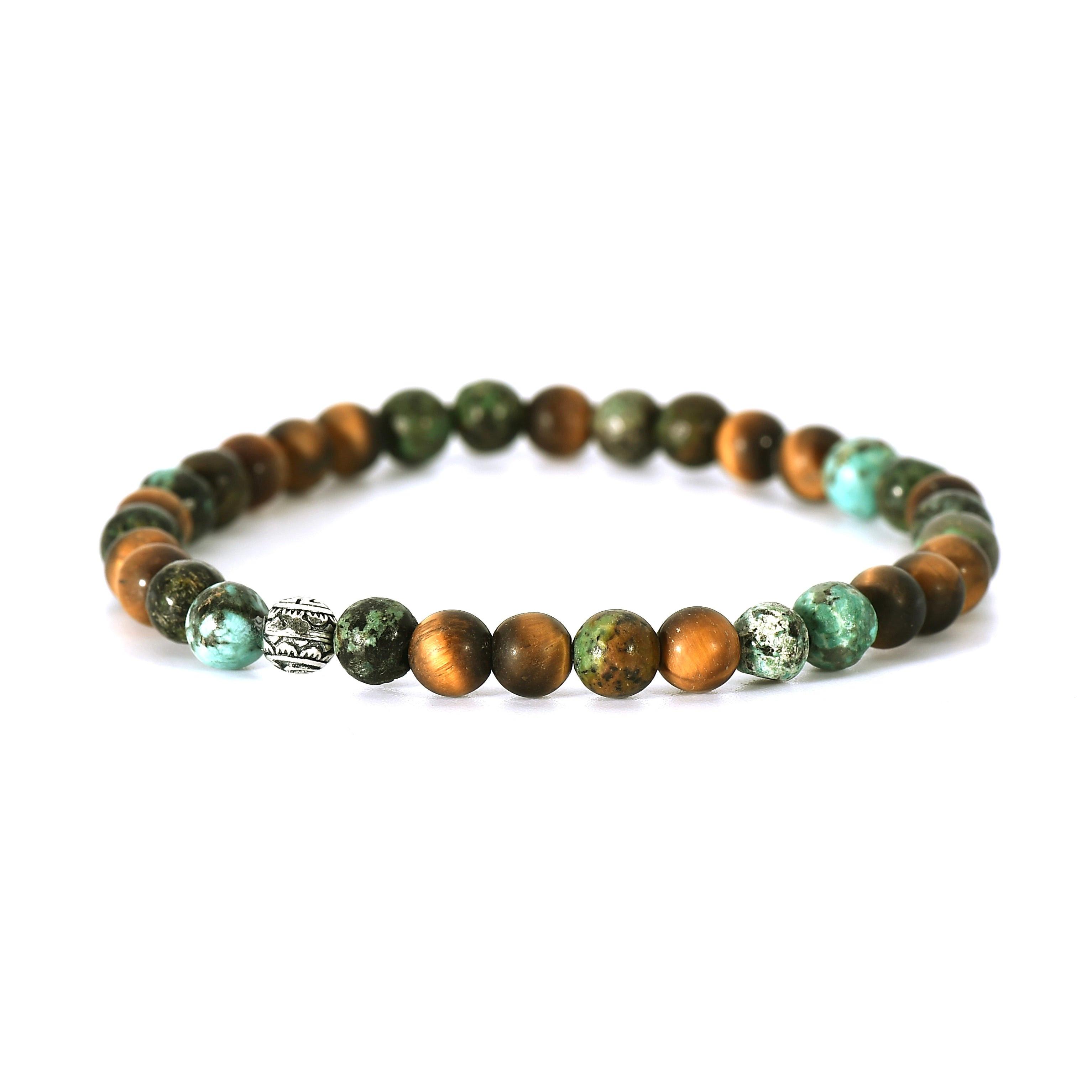 Herren Armband mit 6 mm mattem Tigerauge & afrikanischem Jaspis Natürlich & Stilvoll