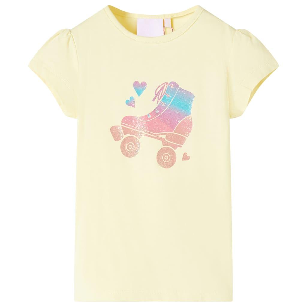 Dieses Kinder-T-Shirt hat kurze Ärmel, einen Rundhalsausschnitt und eine gerade Passform. Das T-Shirt ist mit einem glitzernden Rollschuh auf der Brust bedruckt. Zu 95 % aus Baumwolle und zu 5 % aus Elastan gefertigt, ist das Kurzarmshirt komfortabel und atmungsaktiv.