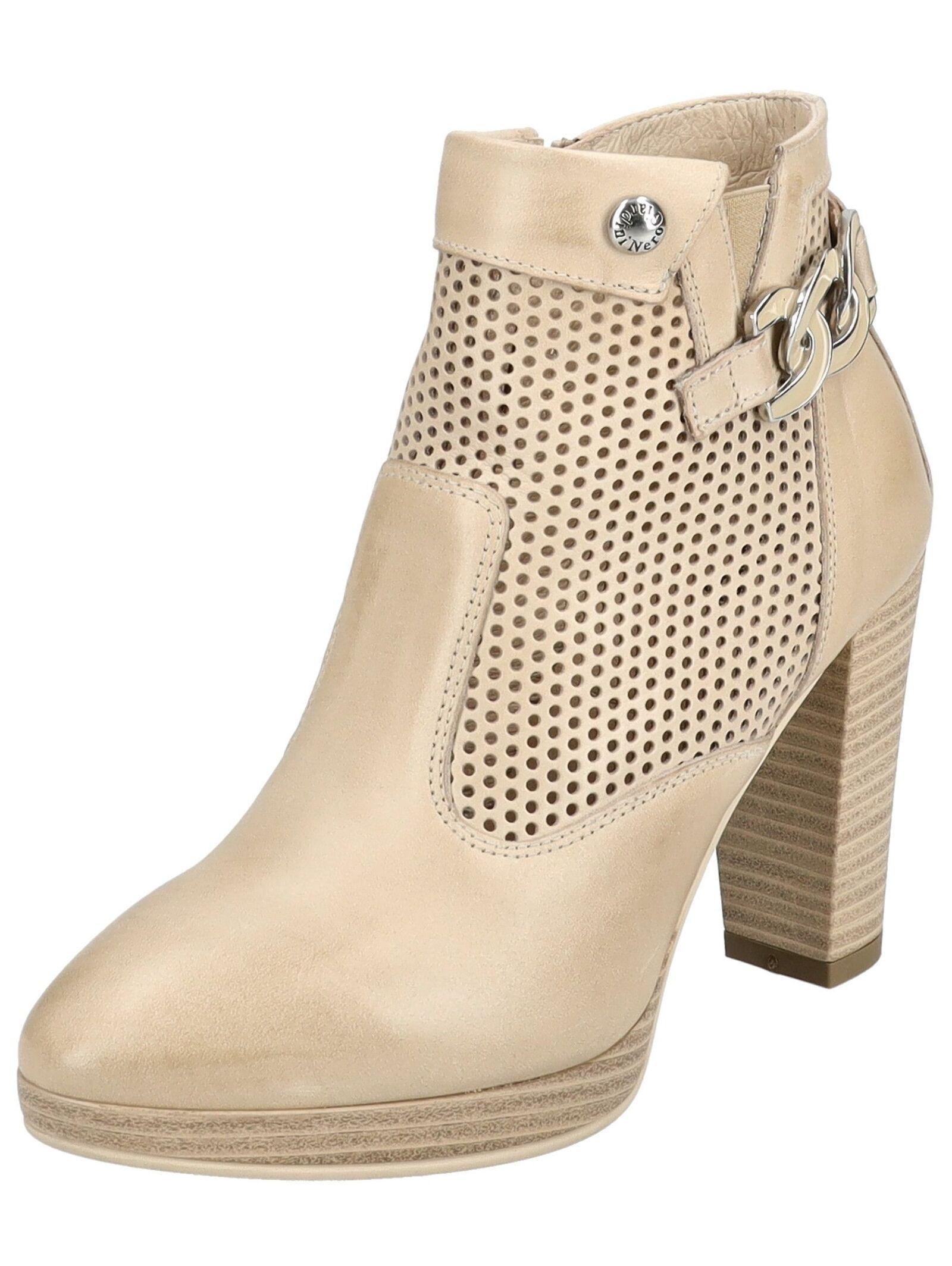 Perfekt für die wärmere Saison geeignet ist diese modische Stiefelette von Nero Giardini aus hochwertigem Leder. Die dezenten Cut-Outs überzeugen nicht nur optisch, sondern sorgen zudem für eine optimale Luftzirkulation. Zudem bietet die angenehm gepolsterte und feuchtigkeitsregulierende Lederdecksohle ein ideales Fußklima. Mit diesem Schuh geht man immer wieder gerne vor die Tür! Obermaterial: Leder Innenmaterial: Leder Decksohle: Leder Laufsohle: Gummi