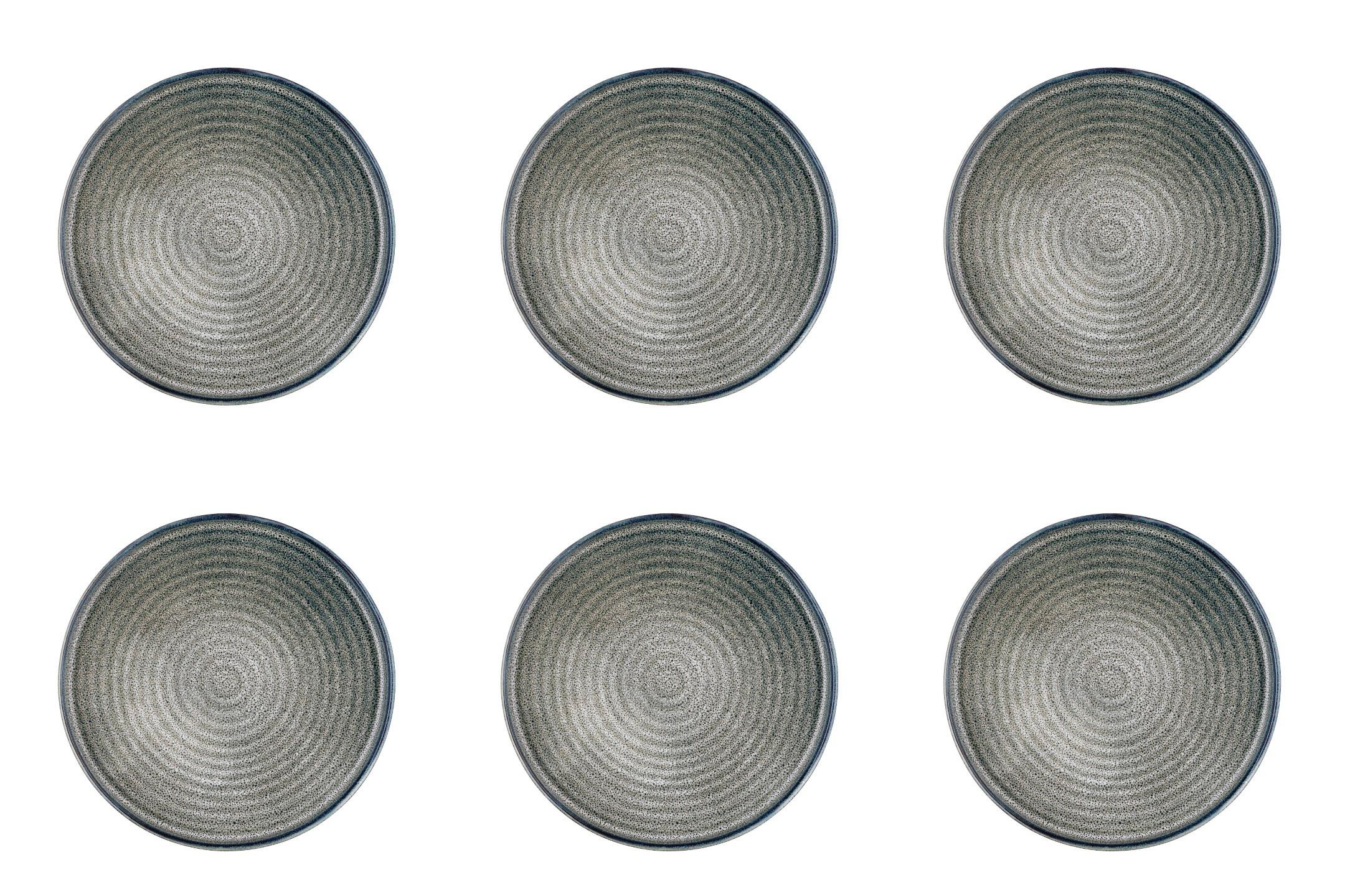 Die ZEN-Kollektion zeichnet sich durch eine perfekte, kreisförmige Linienführung aus, die beruhigend wirkt. Die natürlichen Farbtöne in Kombination mit den kontrastreichen, hellen Kanten sorgen für Gelassenheit am Esstisch. Die Muster und wellenförmigen Oberflächen dieser Kollektion erinnern zweifellos an einen Zen-Garten, in dem eine Atmosphäre entsteht, in der man sich entspannen und austauschen kann.-Enthält: 6 Teller Ø 22 cm