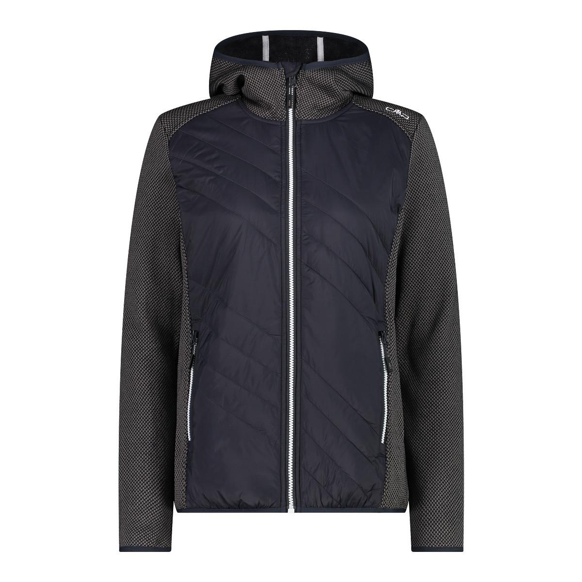 Diese Hybridjacke hat einen sportlichen Schnitt und eine feste Kapuze. Das Vorderteil aus Nylon ist mit 60 g Feel-Warm-Flat-Fasern gefüllt, die Wärme spenden und dabei so wenig wie möglich auftragen. Die Ton-in-Ton-Ärmel sind aus weichem und bequemem Knit-Tech-Fleece. Die beiden Seitentaschen werden mit einem Reissverschluss geschlossen. Die Kapuze, der Saum und die Ärmel haben elastische Kanten, die die Passform verbessern. Eine perfekte obere Schicht für Outdoor-Abenteuer.