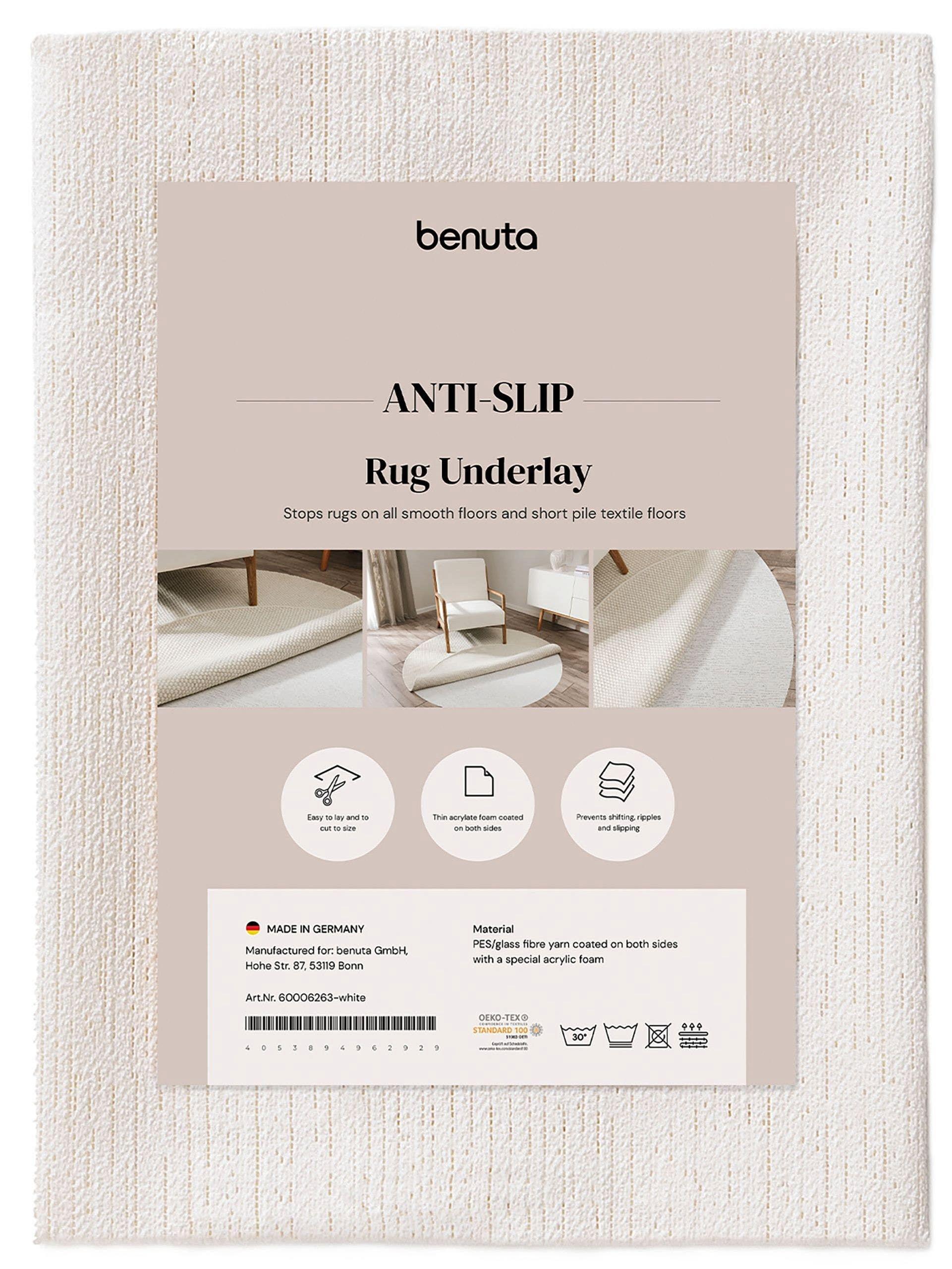 Unsere Teppichunterlagen aus beidseitig beschichtetem Vlies sind praktische Helfer, die unter keinem Teppich fehlen dürfen. Sie sind für textile und glatte Böden in jedem Wohnbereich geeignet. Dank der beidseitigen Haftbeschichtung verhindern sie, dass Ihr Teppich wandert, unschöne Falten schlägt oder verrutscht und sorgen somit für mehr Sicherheit in Ihrem Haushalt. Das für Ihren Teppich benötigte Maß ist nicht dabei? Sie können unsere Teppichunterlagen problemlos mit einer Haushaltsschere zu schneiden und anschließend auf Ihrem Boden verlegen. Verschmutzungen können bei 30 Grad in der Waschmaschine entfernt werden. Zertifiziert nach Öko-Tex Standard 100.