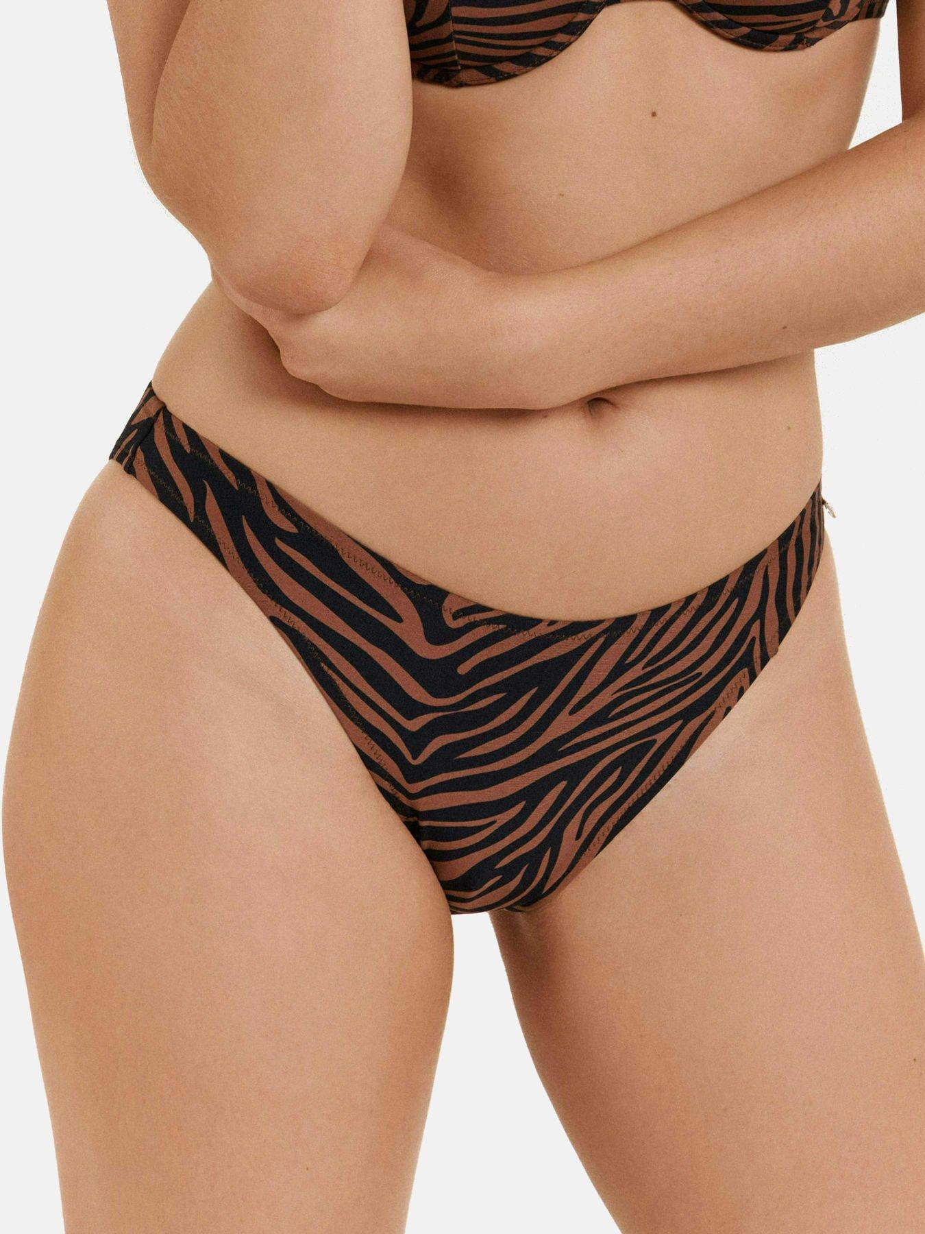 Die Lima Bikinihose präsentiert sich in einem tief ausgeschnittenen Design, das eine moderne und schmeichelhafte Silhouette bietet. Die niedrige Taille ist ca. 22 cm hoch, und der hohe Beinausschnitt sorgt für einen sexy Touch. Sie kombiniert einen kühnen Animalprint mit jugendlicher Frische und einem Strandlook, ideal für zeitgemässe Mode.