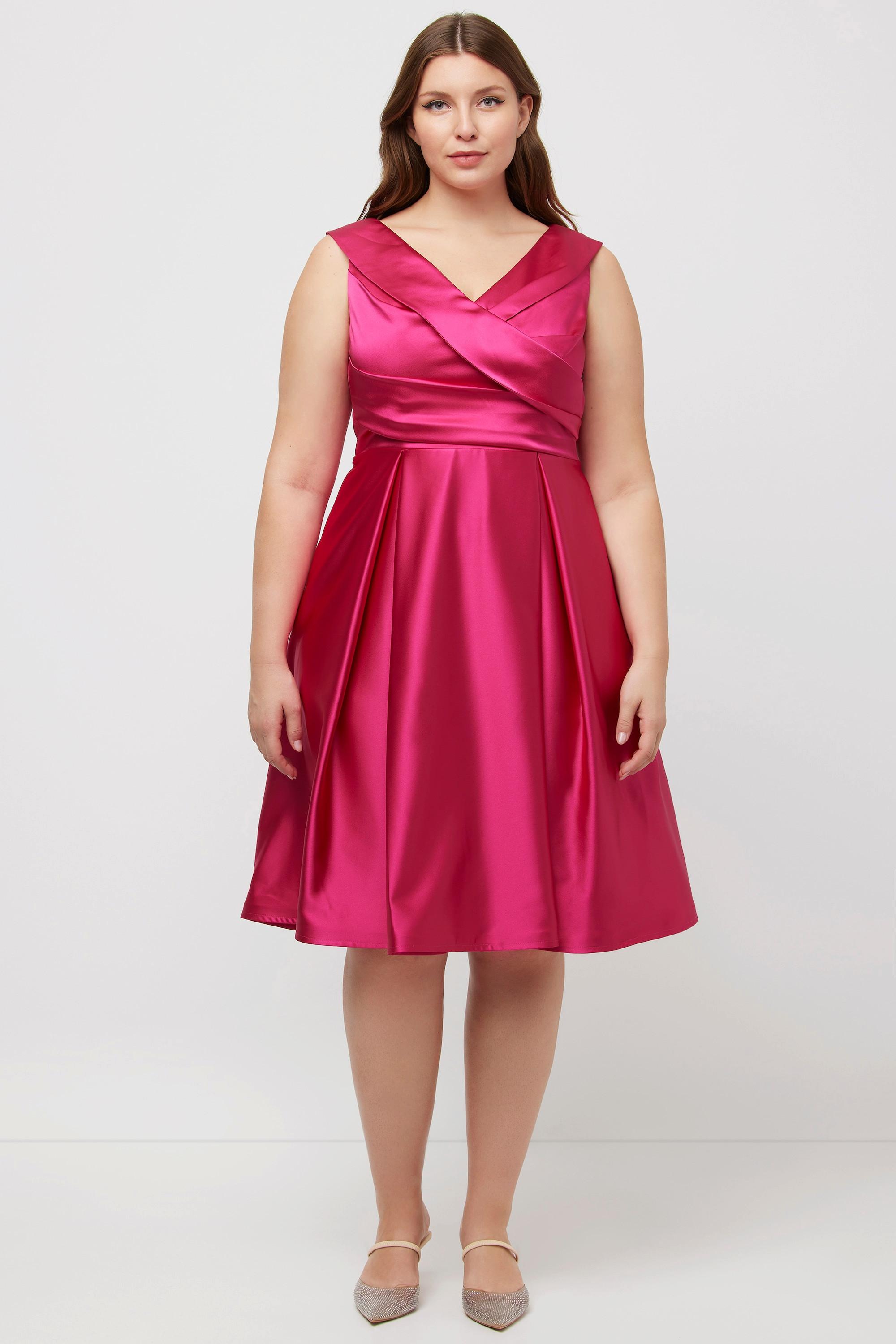 Dieses elegante Abendkleid präsentiert sich in einer schmeichelhaften A-Linien-Silhouette mit drapiertem Design, perfekt für besondere Anlässe. Der V-Ausschnitt verleiht einen Hauch von Raffinesse, während der ärmellose Schnitt Komfort und Bewegungsfreiheit gewährleistet. Eine fein schimmernde Qualität und ein Jersey-Unterkleid sorgen für hohen Tragekomfort.