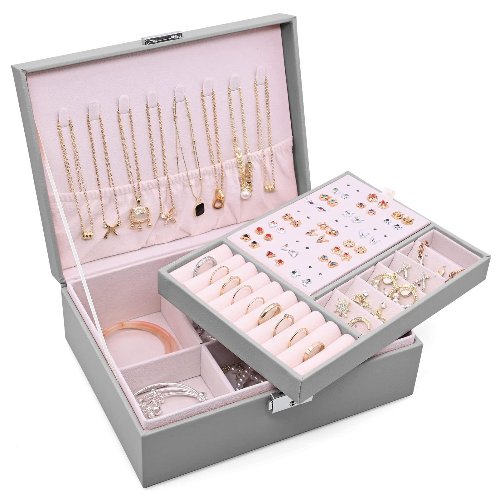 Only-bags.store Schmuckkästchen 2 Schichten Pu-Leder-Schmuck Aufbewahrung Portable abschließbare Reise-Schmuckkästchen