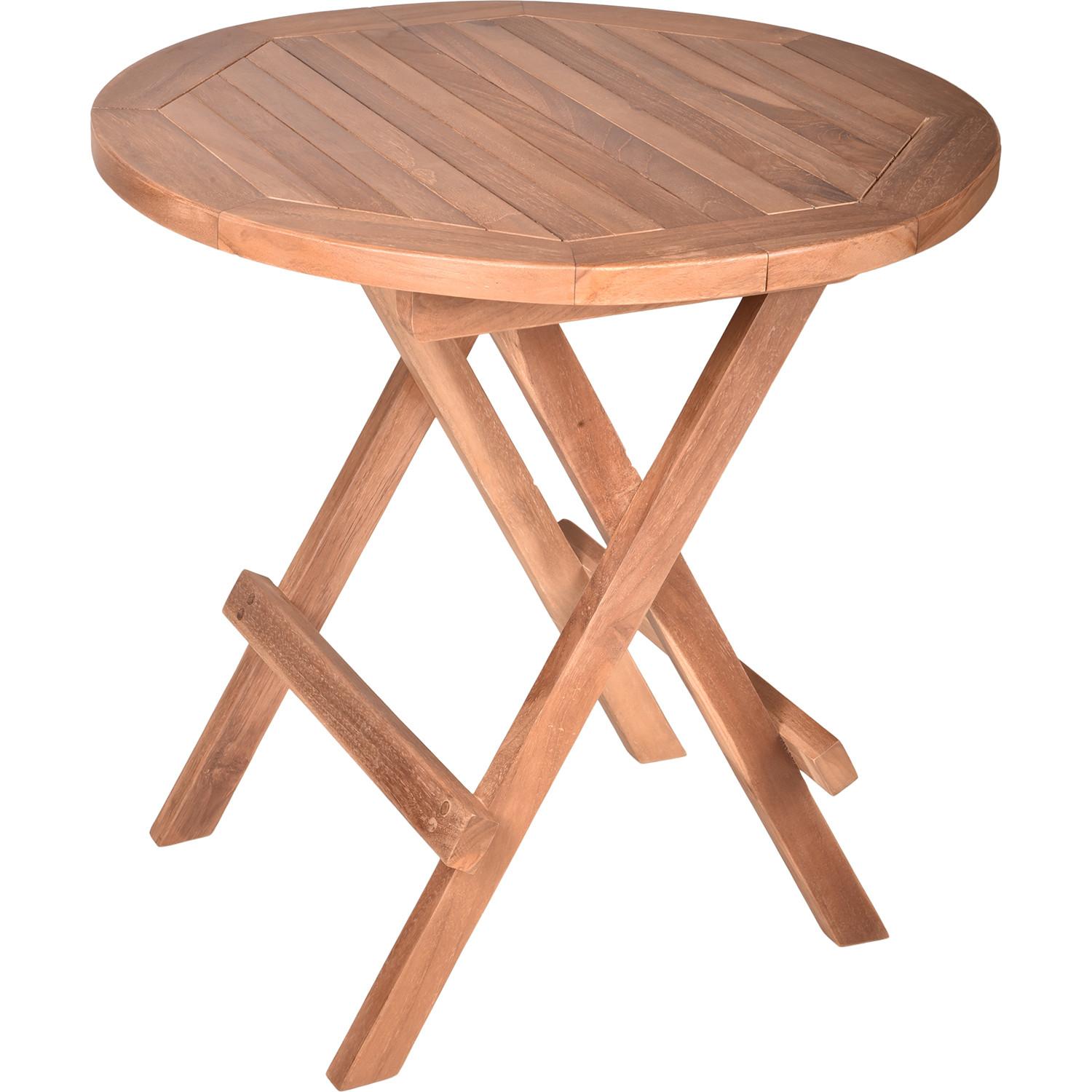 Hergestellt aus massivem, unbehandeltem Teakholz Kompakte Abmessungen für vielseitigen Einsatz Klappfunktion für einfaches Abbauen und Lagerung Einzigartiger Charakter durch natürliche Holzmerkmale Empfohlene Pflege mit handelsüblichem Holzöl Maximale Belastbarkeit von 30 kg Höhe der Tischunterkante: 49 cm Runde Form für harmonische Raumgestaltung