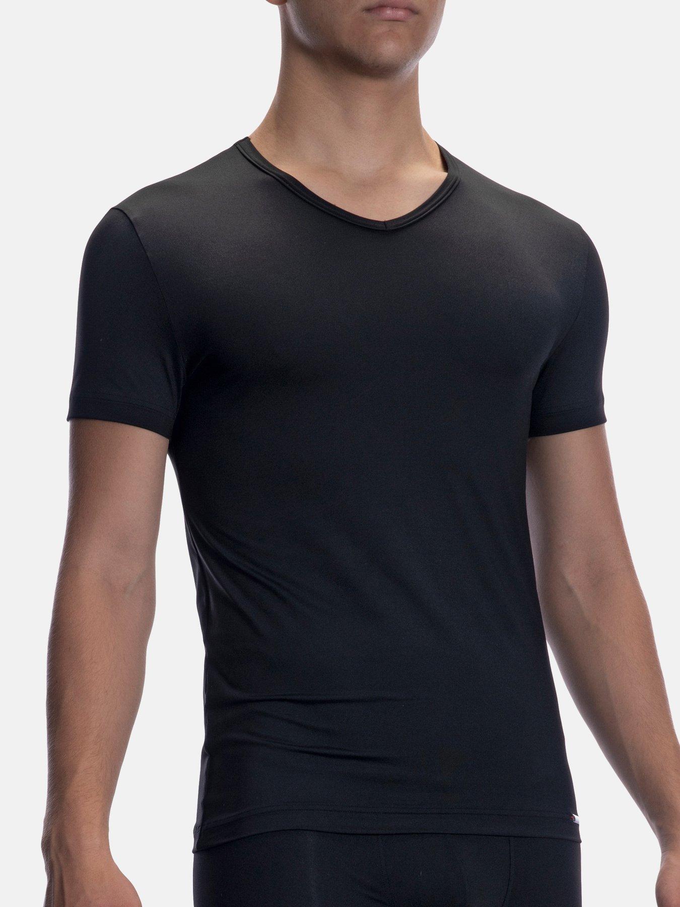 Dieses kurzärmelige T-Shirt verfügt über ein klassisches V-Ausschnitt-Design und ist eine vielseitige Ergänzung für jede Garderobe. Sein schlichter und doch raffinierter Stil macht es für verschiedene Anlässe geeignet, ob als Unterhemd oder allein getragen. Die extrem weiche und elastische Mikrofaser ist pflegeleicht und formstabil. Der Elasthananteil sorgt für hohen Tragekomfort und eine gute Passform. Diese Kollektion unterstreicht den maskulinen Look der Marke.